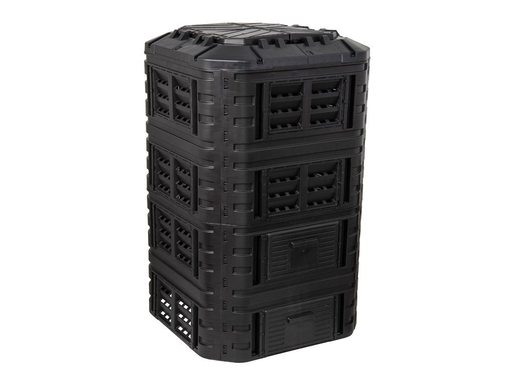 Plastový kompostér o objemu 1260 L z velmi pevného polypropylenu. Konstrukce zajišťuje cirkulaci vzduchu a urychluje rozkladný proces. Součástí výrobku je víko i boční dvířka pro snadné vyjímání kompostu. Kompostér je odolný vůči povětrnostním podmínkám, UV záření a můžete ho mít venku za každého počasí -30 °C až 45 °C. Montáž je velmi jednoduchá, díky CLICK systému není zapotřebí žádné nářadí. Vyrobeno z recyklovaného materiálu.