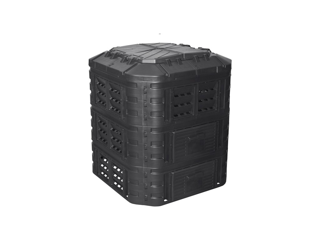 Plastový kompostér o objemu 860 L z velmi pevného polypropylenu. Konstrukce zajišťuje cirkulaci vzduchu a urychluje rozkladný proces. Součástí výrobku je víko i boční dvířka pro snadné vyjímání kompostu. Kompostér je odolný vůči povětrnostním podmínkám, UV záření a můžete ho mít venku za každého počasí -30 °C až 45 °C. Montáž je velmi jednoduchá, díky CLICK systému není zapotřebí žádné nářadí. Vyrobeno z recyklovaného materiálu.