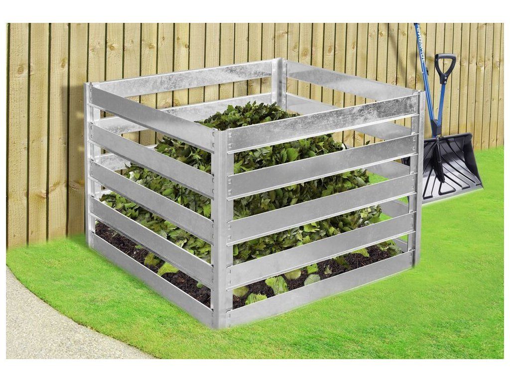 Jednoduchý, ale praktický kovový kompostér o objemu 560l.