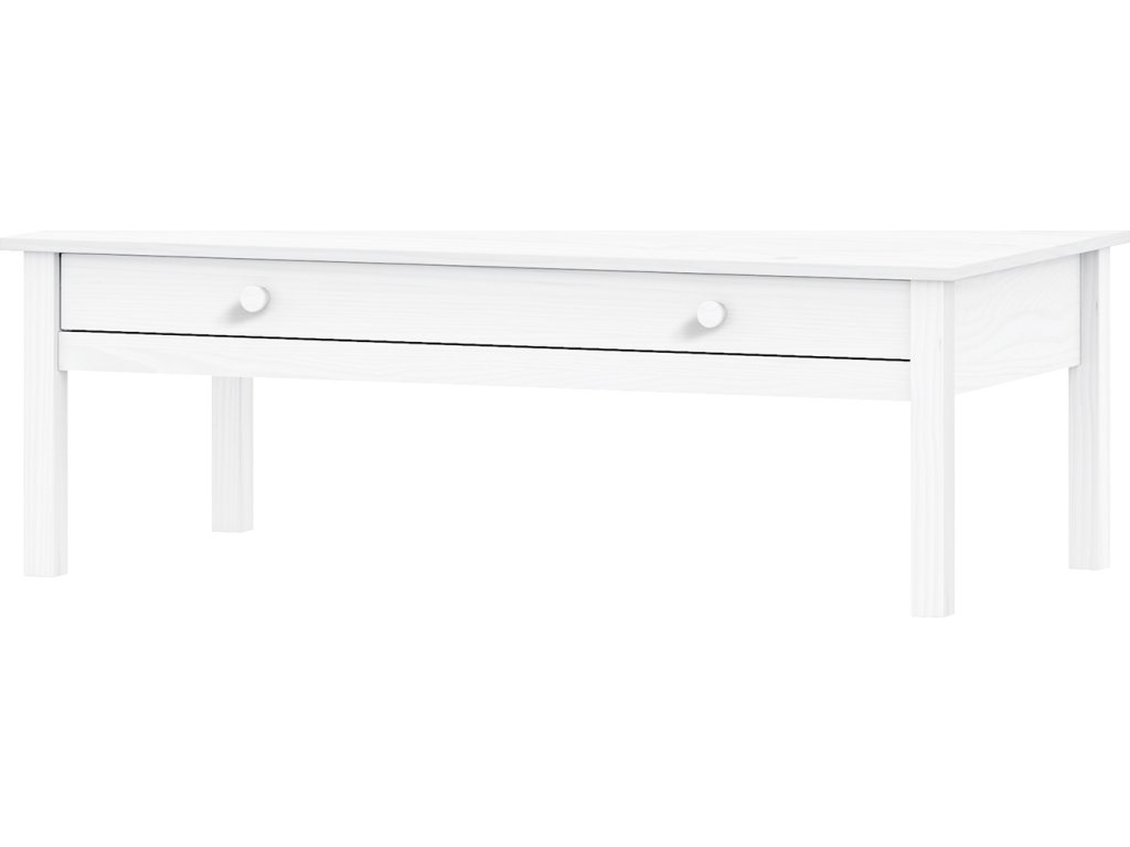 materiál masiv borovice, barevné provedení bílý lak široká zásuvka s kovovými pojezdy