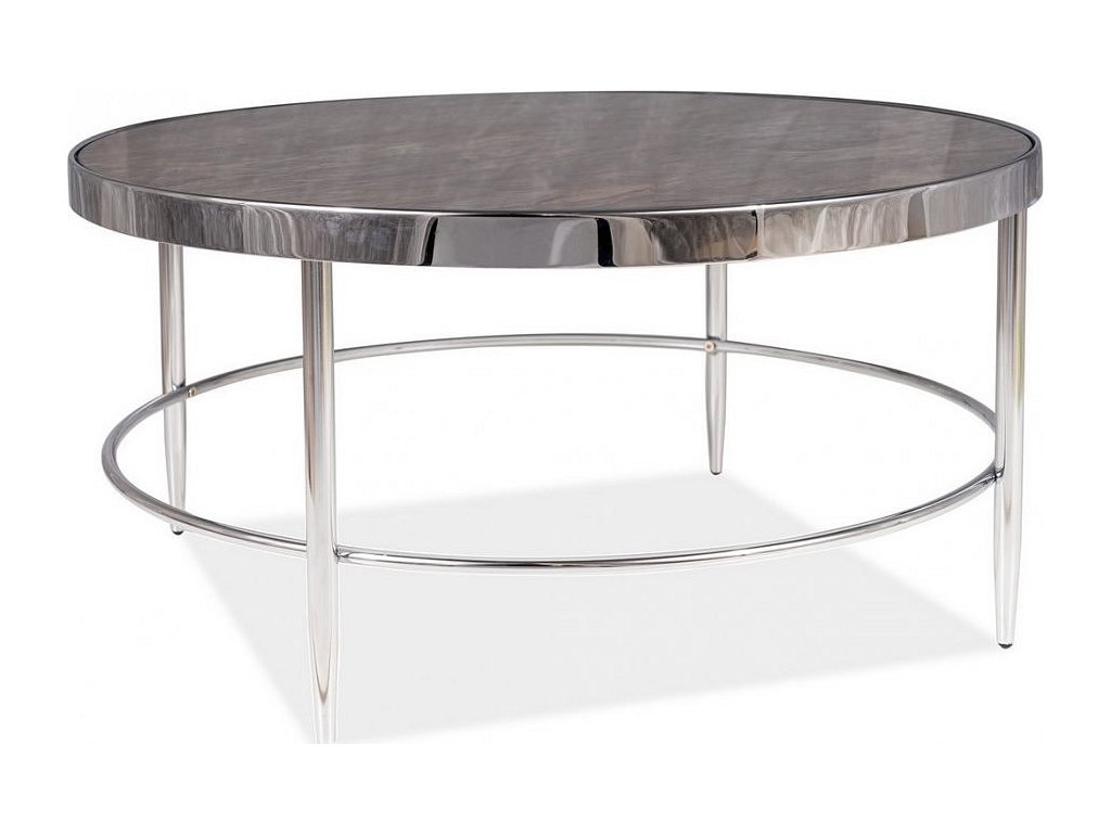Konferenční stolek v moderním stylu glamour. Konstrukce je z kovu v barvě chróm, deska stolku je z tvrzeného skla s efektem mramoru. Tento stylový kousek v moderním designu se bude vyjímat v každém interiéru. Dodáváme v demontovaném stavu.Doplňkové parametry