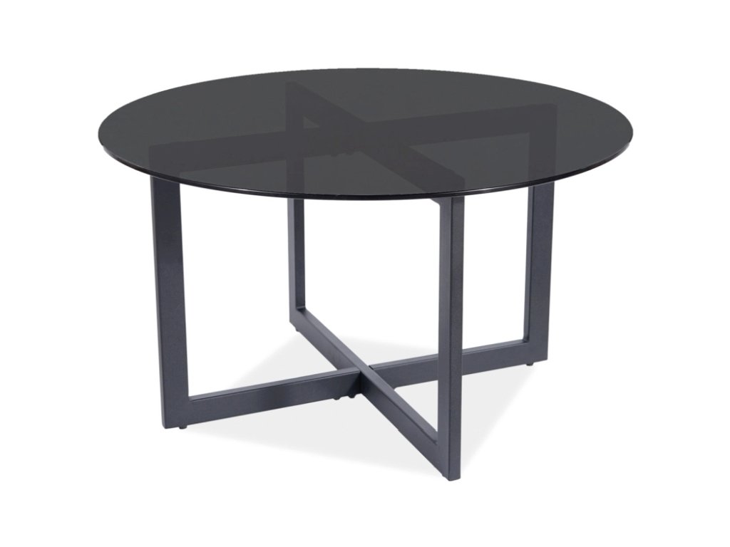 Konferenční stolek v moderním stylu. Konstrukce je z kovu lakovaného černou barvou, vrchní deska je z tvrzeného kouřového skla. Tento stylový kousek v jednoduchém designu se bude vyjímat v každém interiéru. Dodáváme v demontovaném stavu.Doplňkové parametry