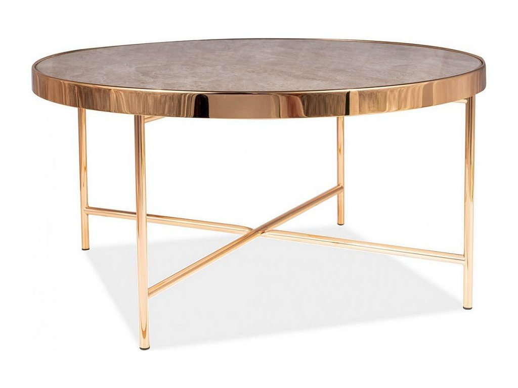 Konferenční stolek v moderním stylu glamour. Konstrukce je z kovu ve zlaté barvě, deska stolku je z tvrzeného skla s efektem mramoru. Tento stylový kousek v moderním designu se bude vyjímat v každém interiéru. Dodáváme v demontovaném stavu.Doplňkové parametry