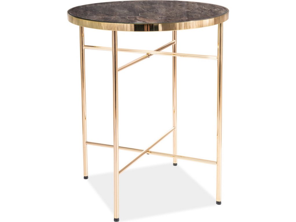 Konferenční stolek v moderním stylu glamour. Konstrukce je z kovu ve zlaté barvě, deska stolku je z tvrzeného skla s efektem mramoru. Tento stylový kousek v moderním designu se bude vyjímat v každém interiéru. Dodáváme v demontovaném stavu.Doplňkové parametry