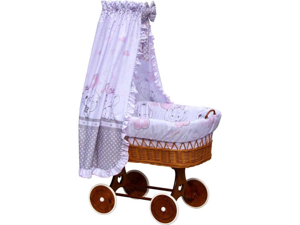 Proutěný košík na miminko s nebesy Scarlett Gusto - růžová