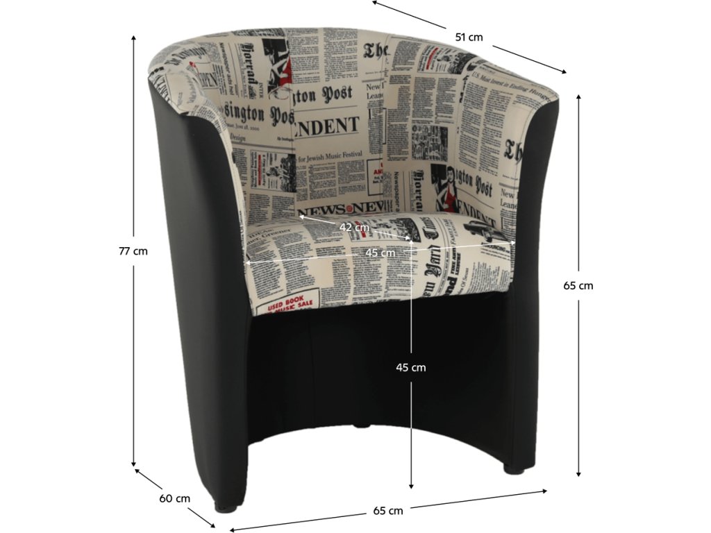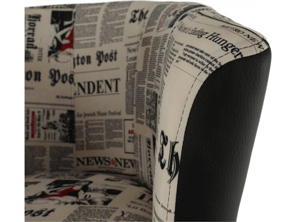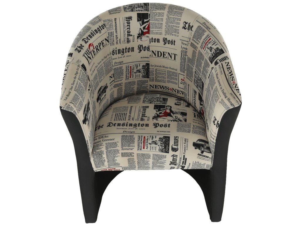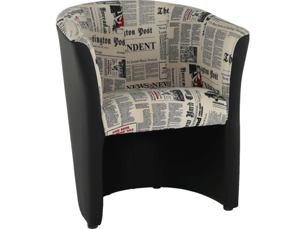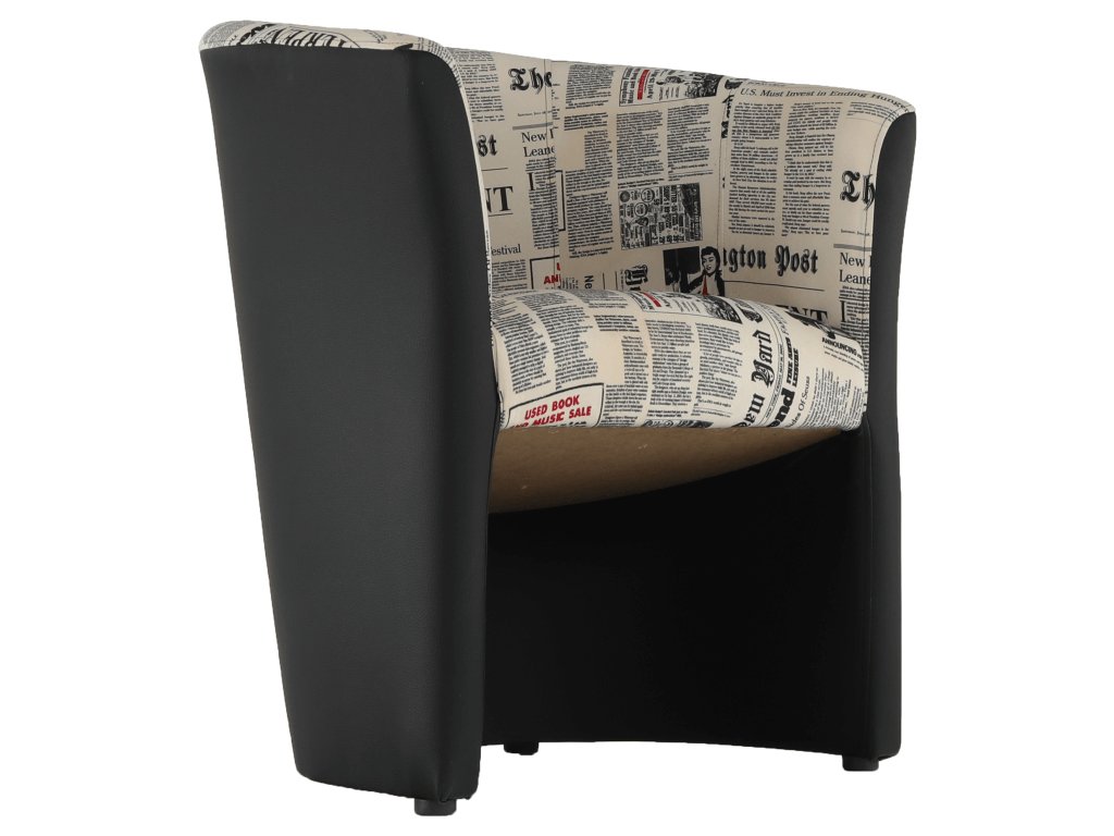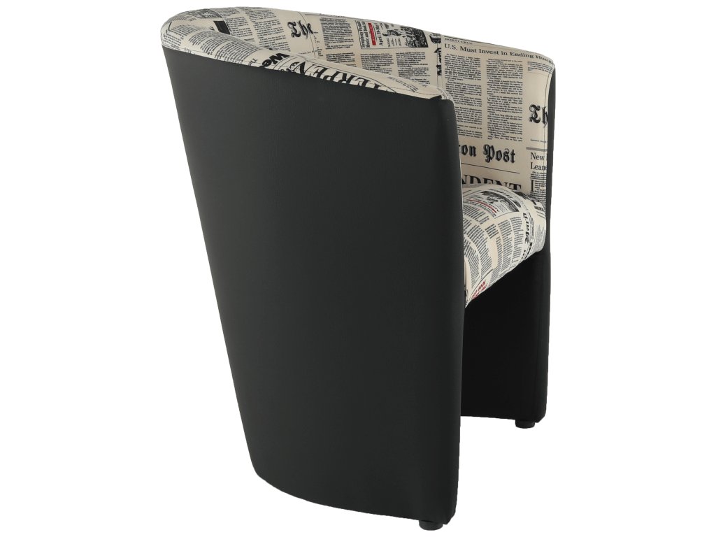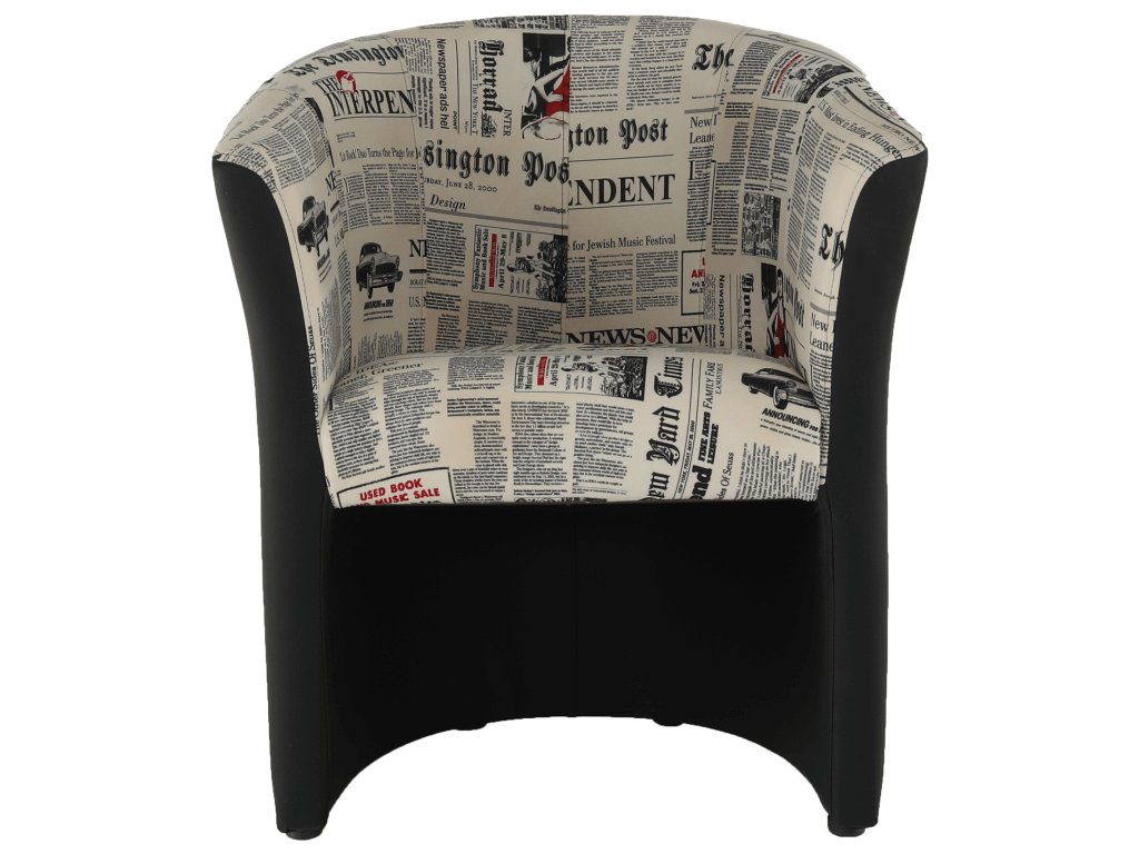 Klubové křeslo, ekokůže černá / látka vzor novin, CUBA