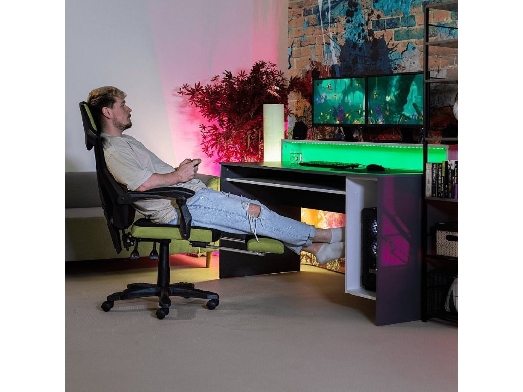 Materiál konstrukce: plast Barva: černá Materiál čalounění: síťovina Oděruodolnost síťoviny podle testu Martindale: 90 000 oděrek Barva: černá / zelená Rozměry (ŠxHxV): 60x65x108-118 cm Nastavitelná výška sedu: 45-55 cm Hloubka sedu: 49 cm Šířka sedu: 50 cm Výška zádové opěrky: 75,7 cm Šířka zádové opěrky: 48 cm Maximální nosnost: 150 kg Polohovací opěrka zad má sklon 90-135 ° Určeno pro dlouhé sezení Čalouněné područky Dřevěný nosný rám na sedadle Plastový nosný rám na opěradle plastová podstava výsuvná podnož Dodávané v demontu