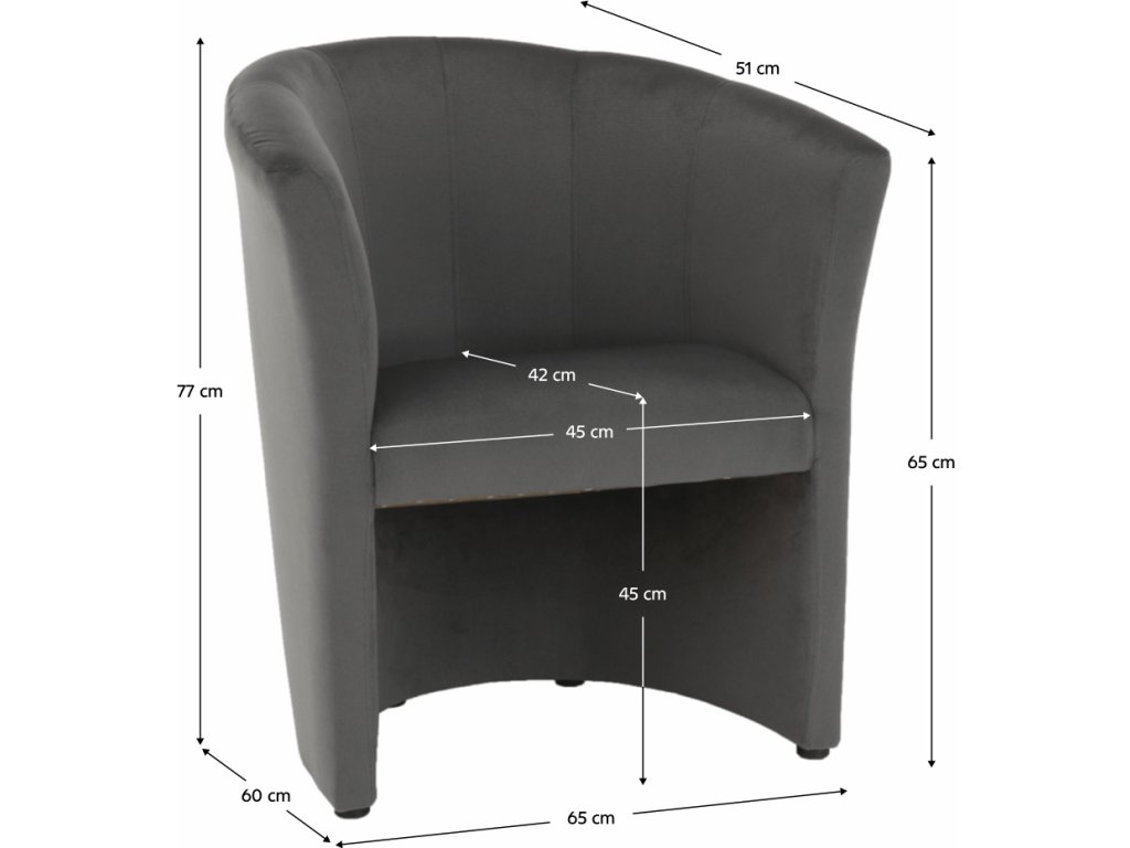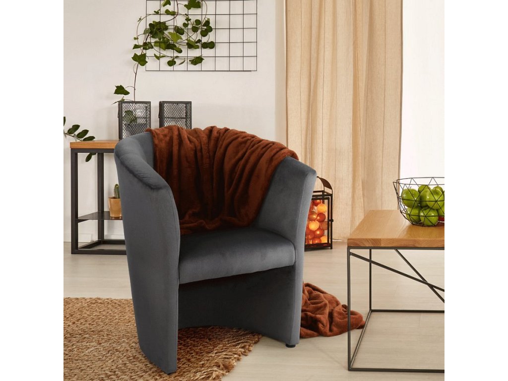 Klubové křeslo, šedá látka, CUBA