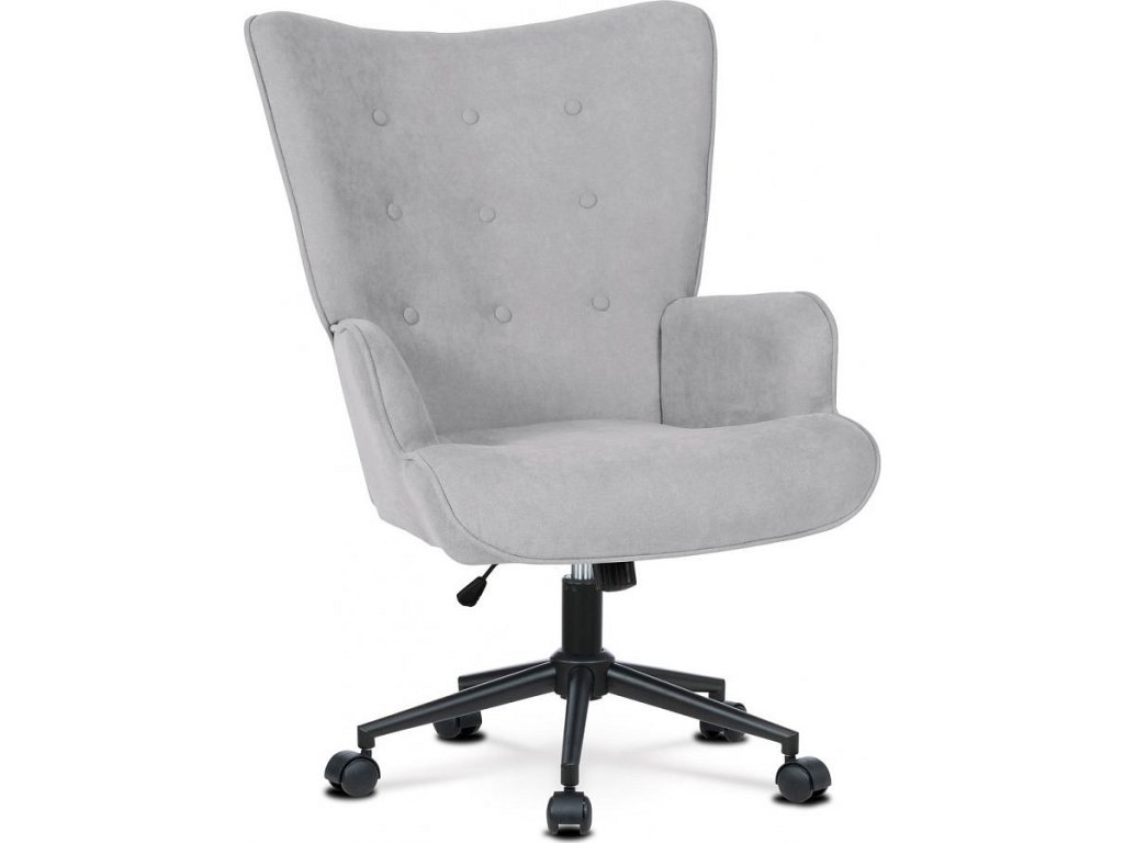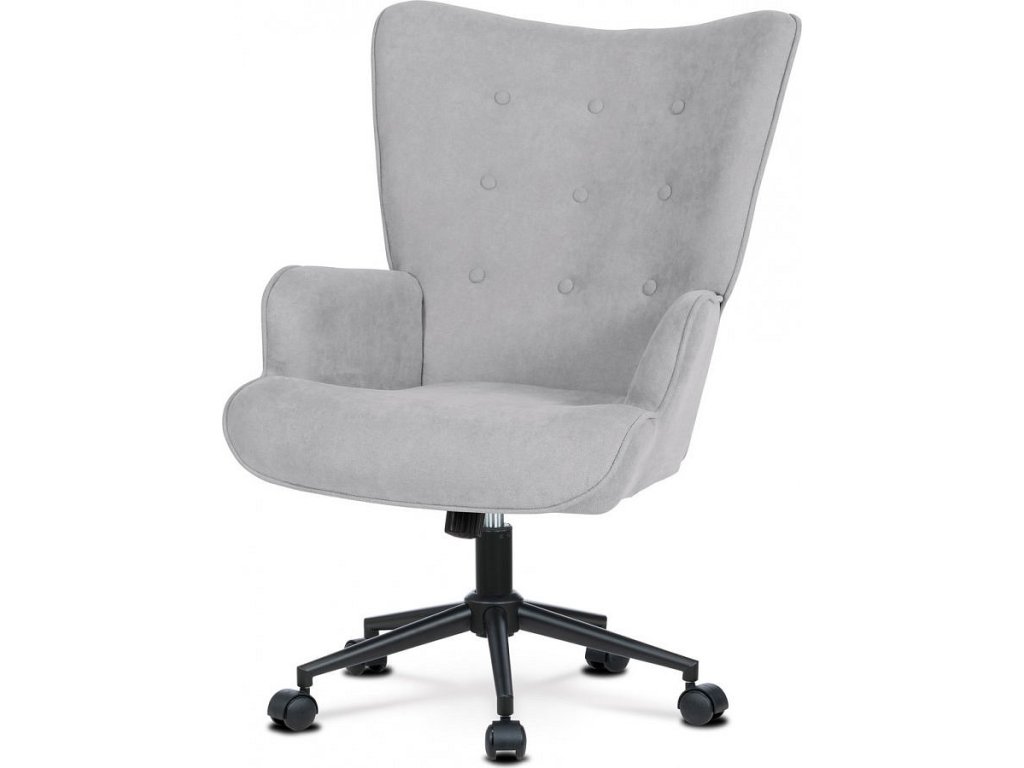 Křeslo "ušák", potah stříbrná látka, kovový kříž