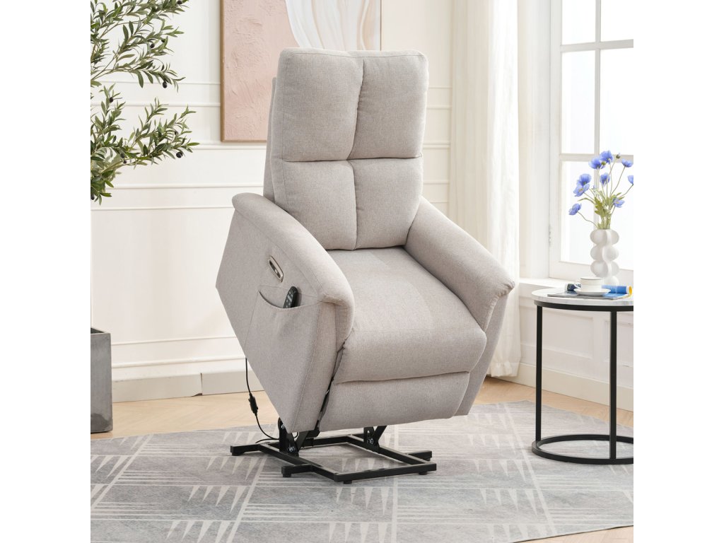 Objevte pohodlí a relaxaci s naším elektricky ovládaným relaxačním křeslem v moderní krémové barvě. Toto křeslo je navrženo tak, aby poskytovalo maximální komfort a zlepšilo váš domácí odpočinek. Ideální do obývacího pokoje, kde se stane vaším oblíbeným místem pro relaxaci. Klíčové vlastnosti: • Elektrické ovládání: Křeslo je vybaveno jedním motorem pro snadné a plynulé nastavování polohy opěradla a podnožky. • Výklopná funkce: Usnadňuje vstávání, což je ideální pro osoby s omezenou pohyblivostí. • Integrované ovládání s USB a USB-C: Panel umožňuje snadné nastavení křesla a nabíjení vašich elektronických zařízení přímo z křesla. • 8 bodová vibrační masáž: Strategicky rozmístěné body masáže poskytují maximální úlevu a uvolnění svalů. • Vyhřívání: Vyhřívací funkce je ideální pro chladnější dny a pomáhá zmírnit svalové napětí. • Kabelový ovladač: Snadno dostupný a intuitivní ovladač pro funkce masáže a vyhřívání. • Moderní design: Čalouněné měkkou a odolnou látkou v elegantní šedé barvě, která se hodí do jakéhokoli interiéru. Proč si vybrat naše elektrické relaxační křeslo? Naše elektricky ovládané relaxační křeslo je navrženo s ohledem na vaše pohodlí a zdraví. S funkcemi jako jsou vibrační masáž a vyhřívání, poskytuje úlevu od každodenního stresu a napětí. Integrované ovládání s USB porty je moderním doplňkem, který vám umožní zůstat připojení a nabíjet svá zařízení, aniž byste museli vstávat. Výklopná funkce je skvělá pro seniory nebo osoby s omezenou pohyblivostí, usnadňuje vstávání a zajišťuje bezpečnost. Zakupte si naše krémové elektrické relaxační křeslo ještě dnes a začněte si užívat luxusní pohodlí ve svém domově.Doplňkové parametry