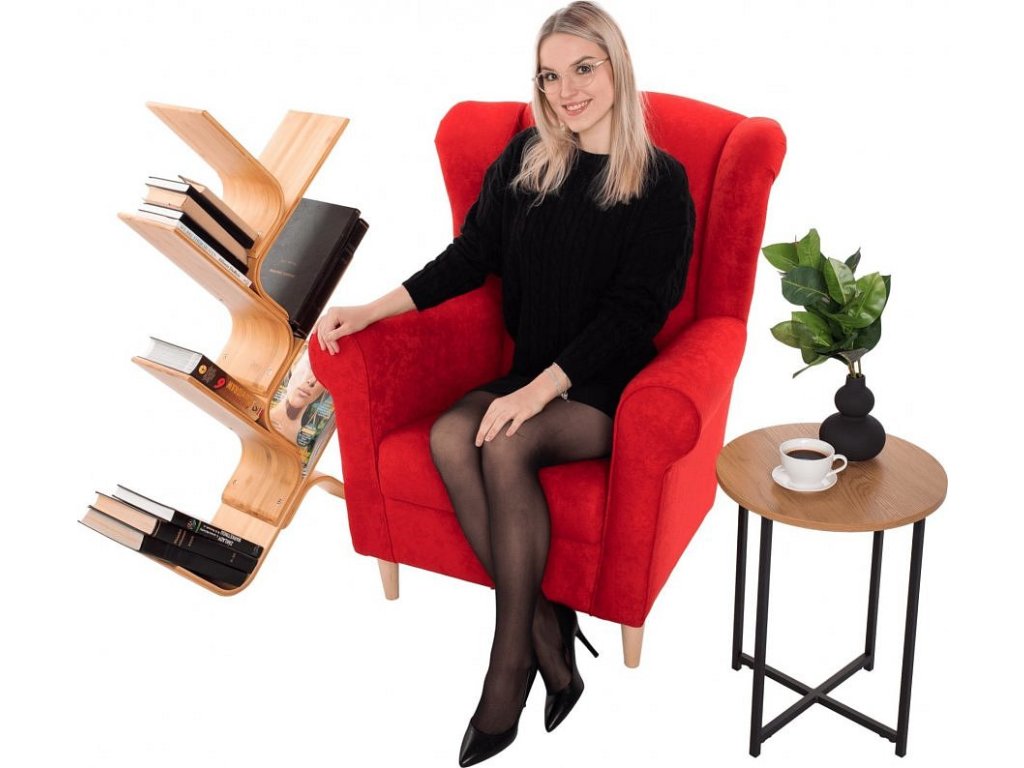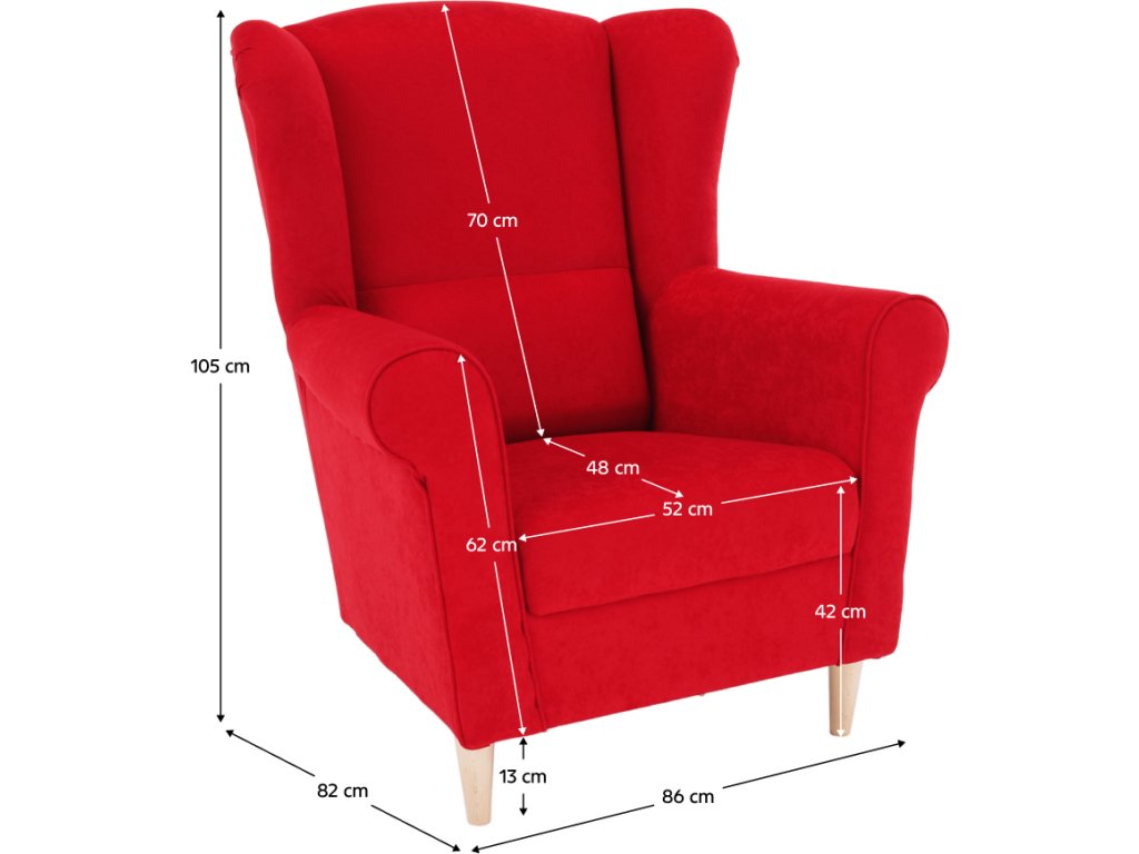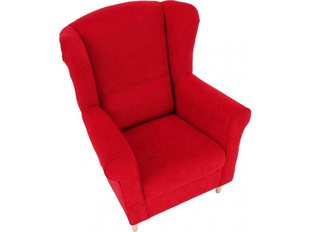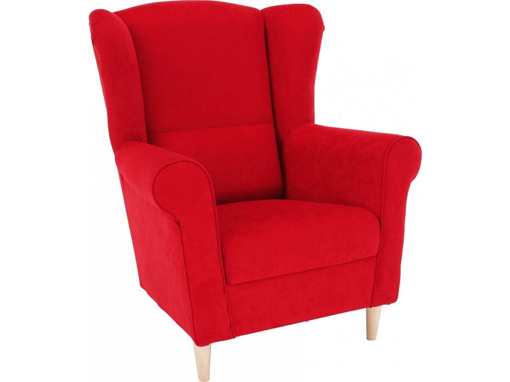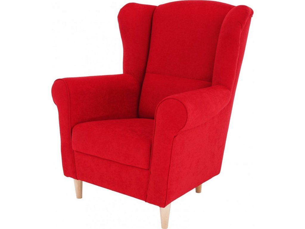 Křeslo ušák, látka červená, Charlot