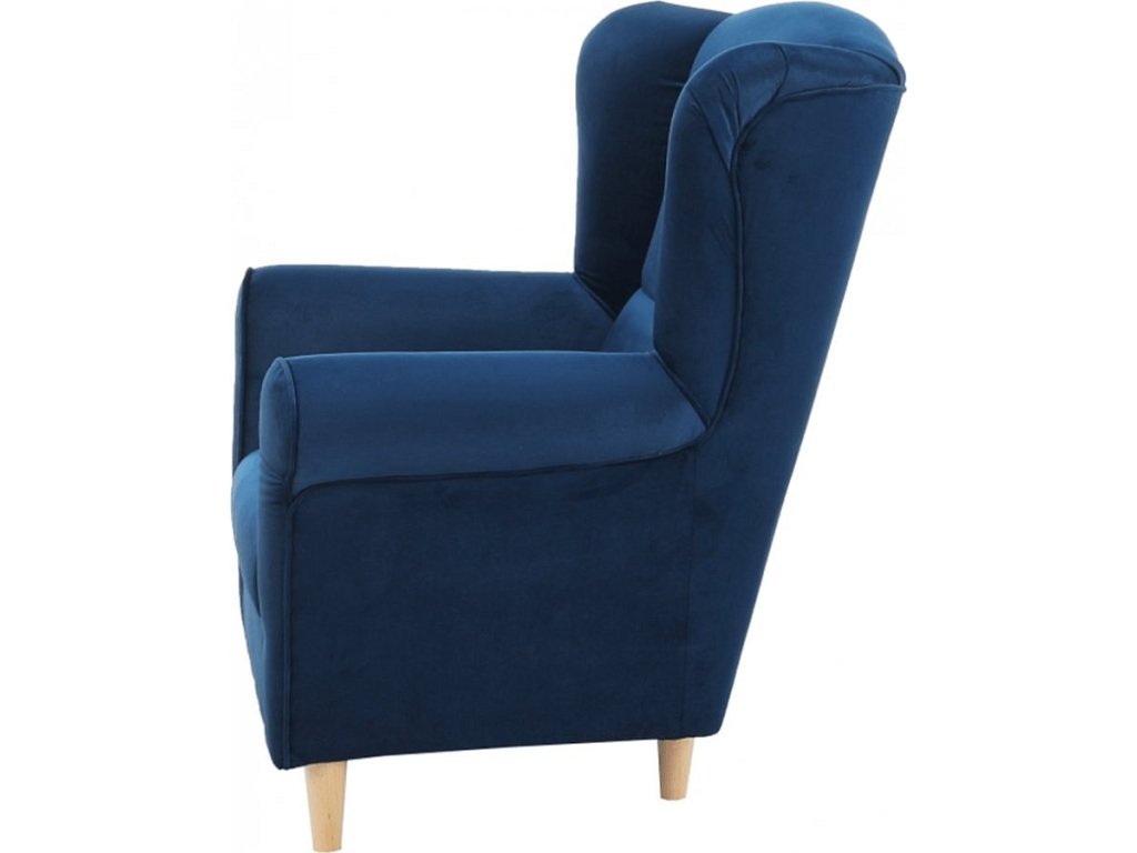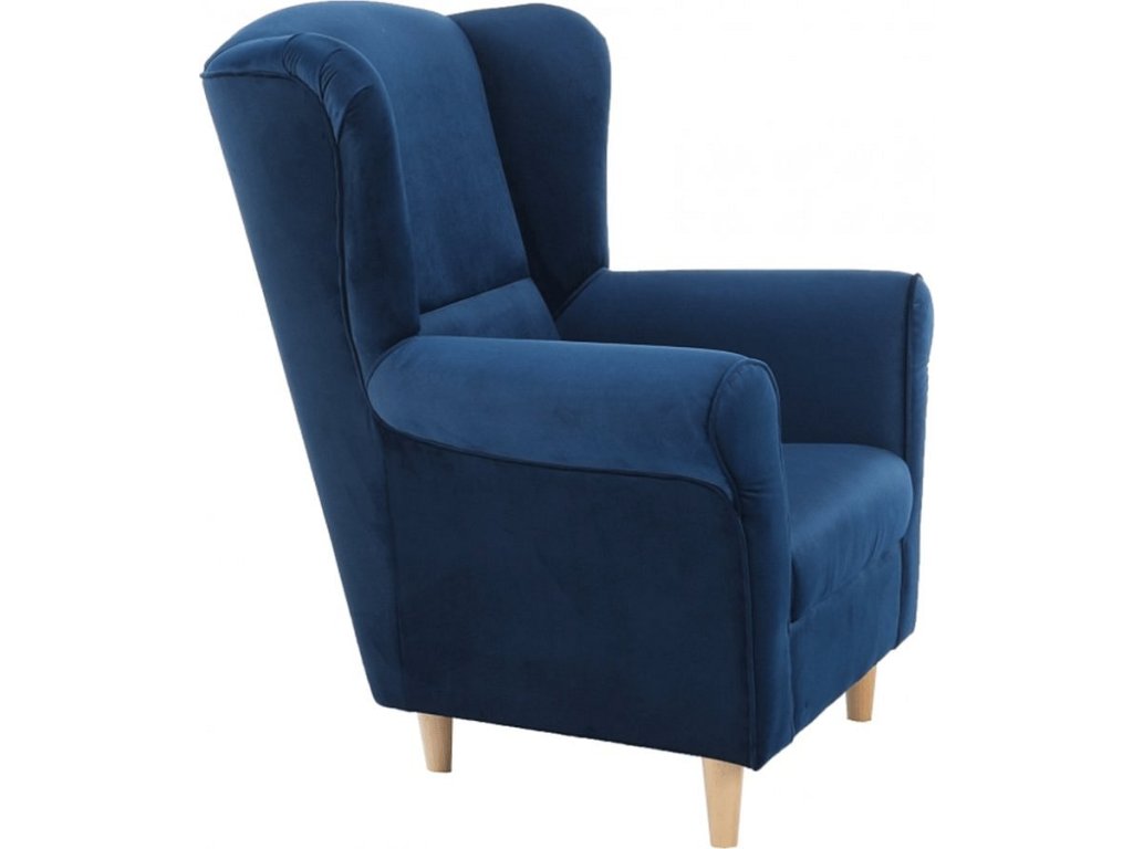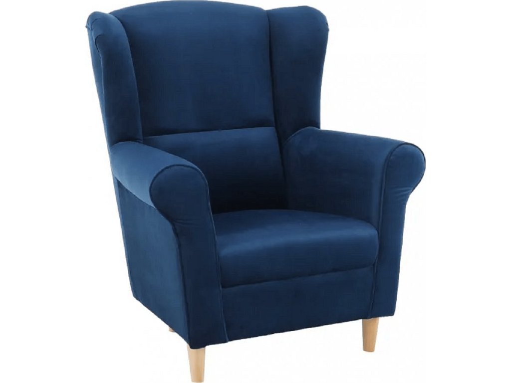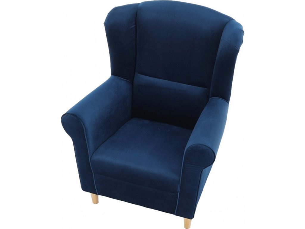 Křeslo ušák, látka modrá, CHARLOT