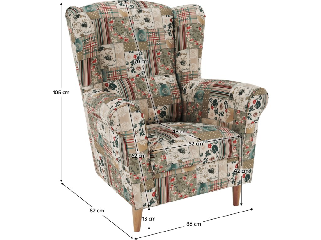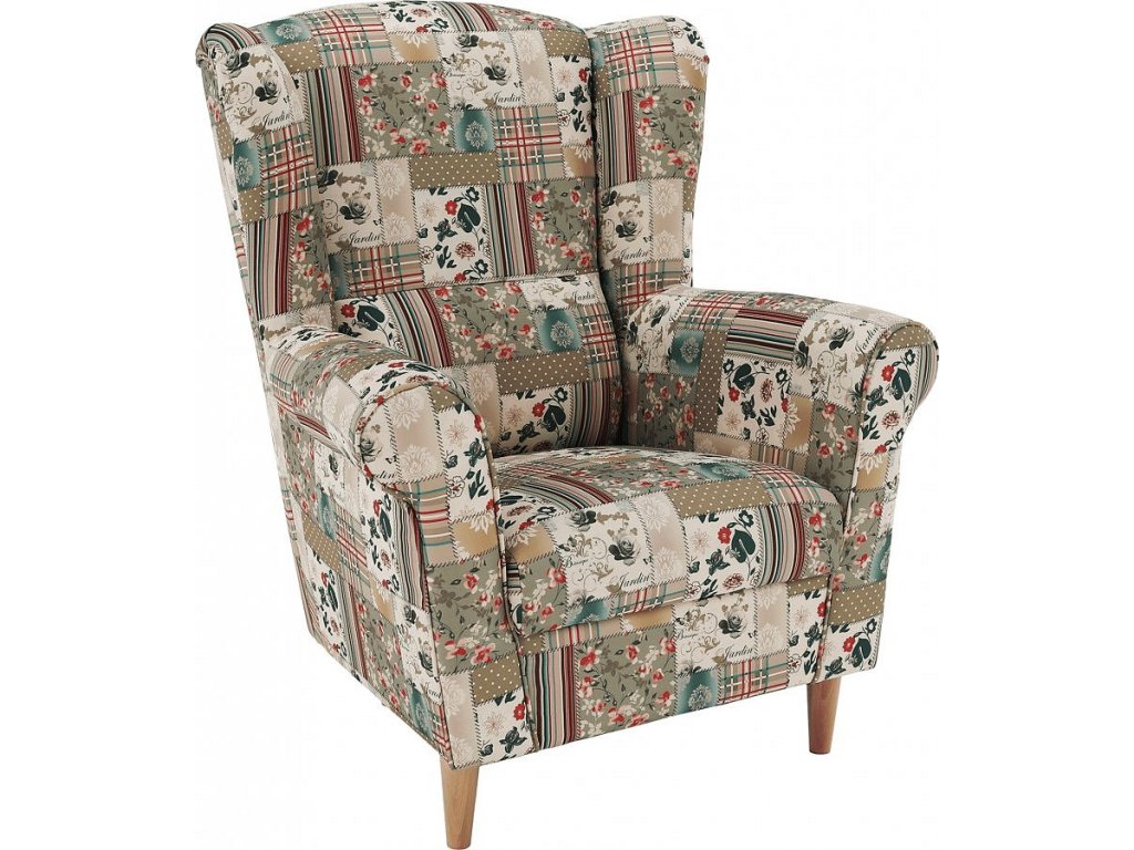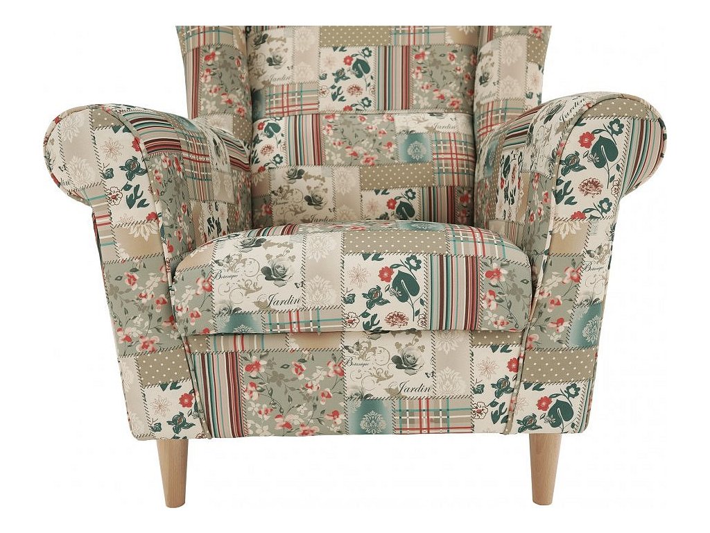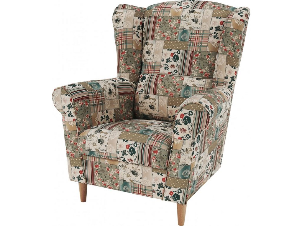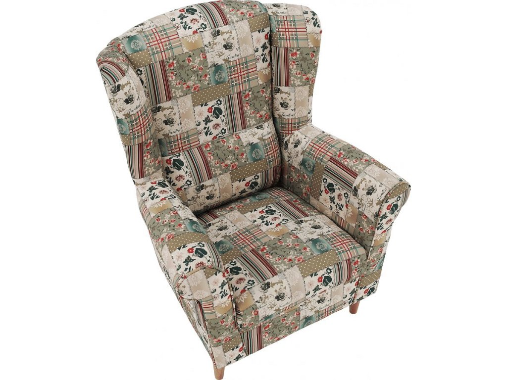Křeslo ušák, látka patchwork Viorica 1, Charlot