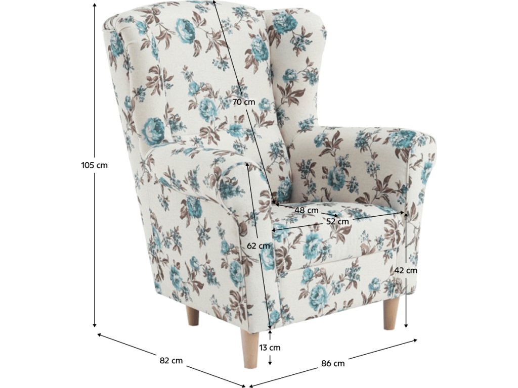 ;"Křeslo-ušák Charlot v barevném provedení látky Rose 14. Oděruodolnost textilie podle testu Martindale: 85 000 oděrek Dřevěné nožičky v barevném provedení buk. Rozměry (ŠxHxV): 86x72x105 cm Výška sedu: 42 cm Hloubka sedu: 48 cm Nosnost: 120 kg Možnosť objednania v 6 farebných prevedeniach látky alova v cene 7.390 Kč alebo látky Soro v cene 7.790 Kč. Při individuální objednávce je třeba zaplatit 10% zálohu z dané částky. Po uhrazení zálohy bude Vaša objednávka zadána do výroby. Doba dodání 8-10 týdnů.