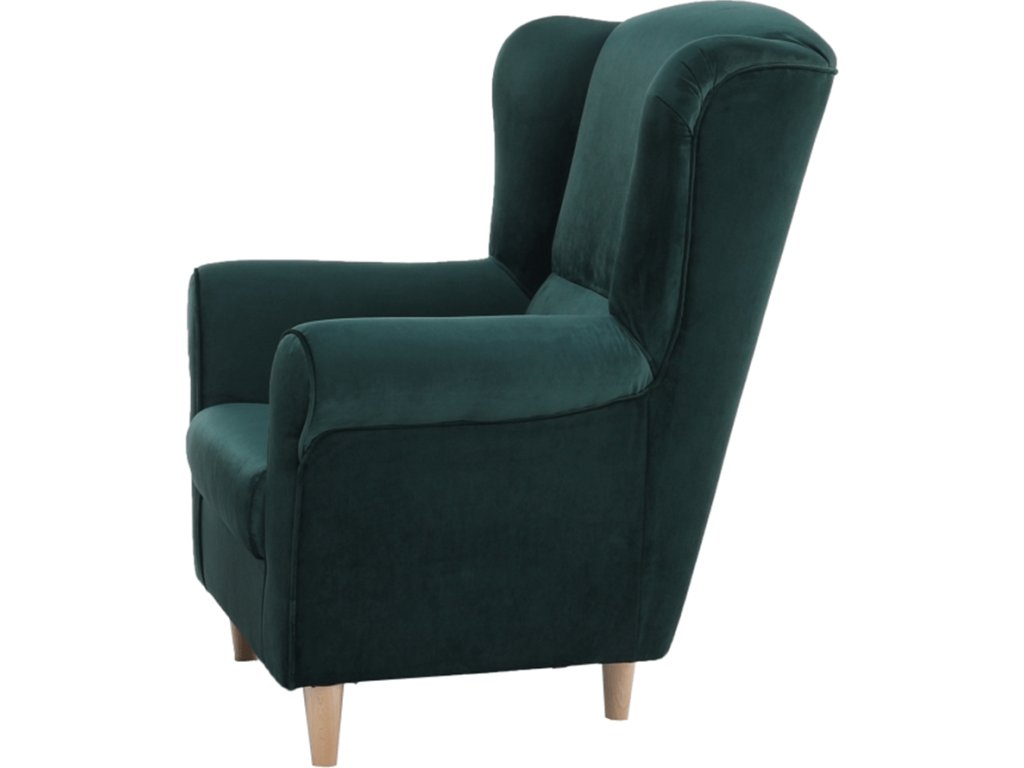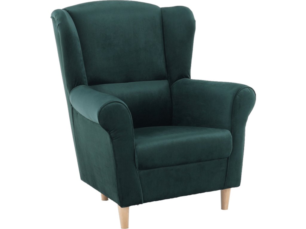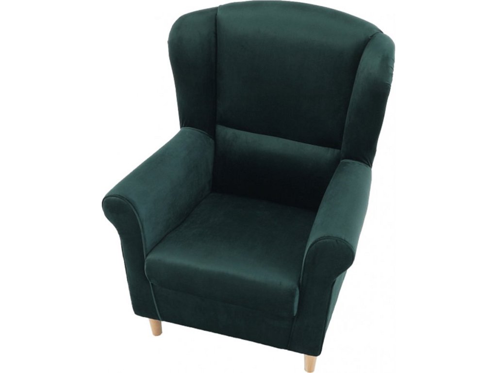 Křeslo ušák, látka smaragdová, CHARLOT