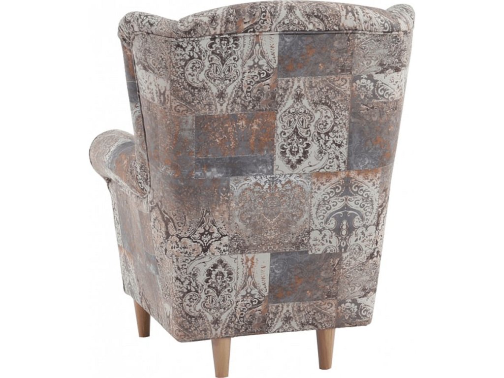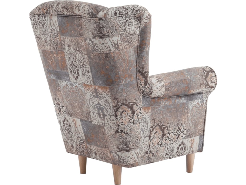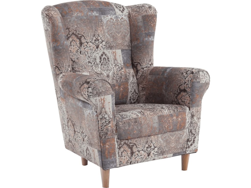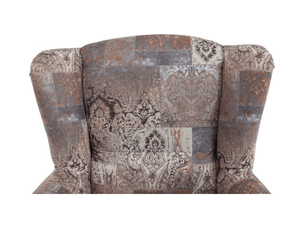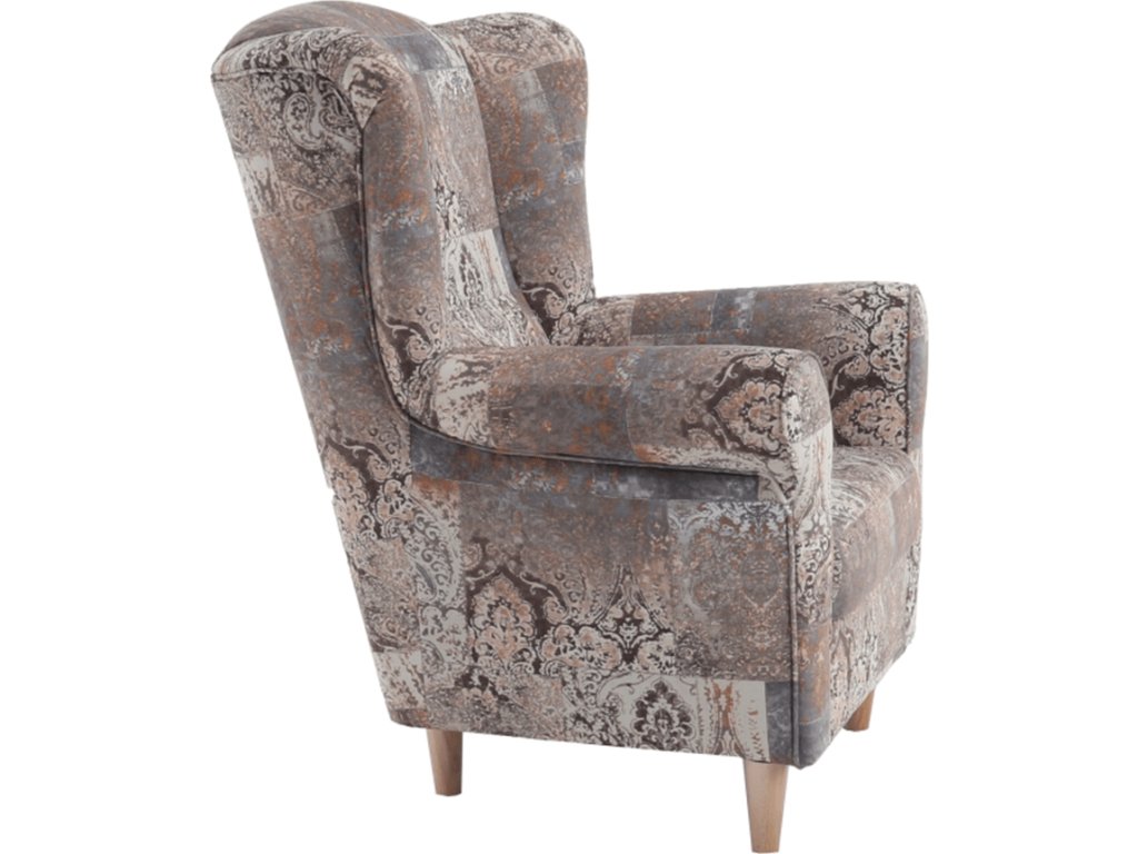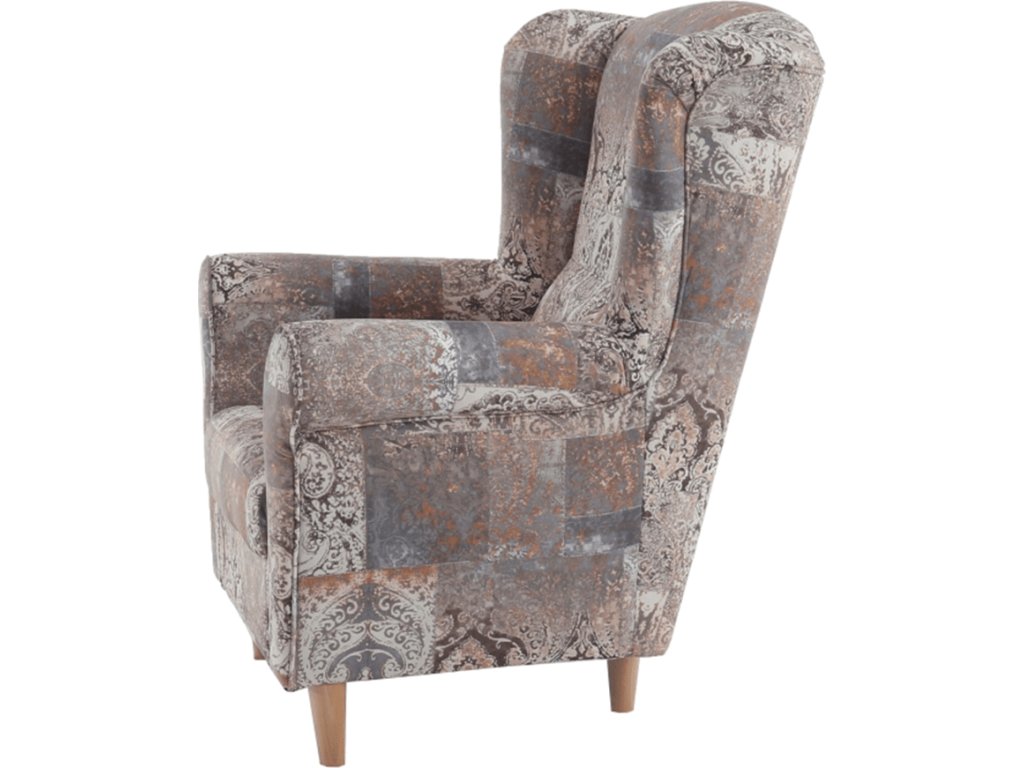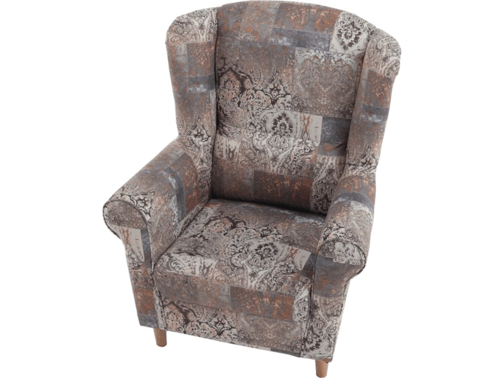 Křeslo ušák, látka vintage hnědá 1026, Charlot