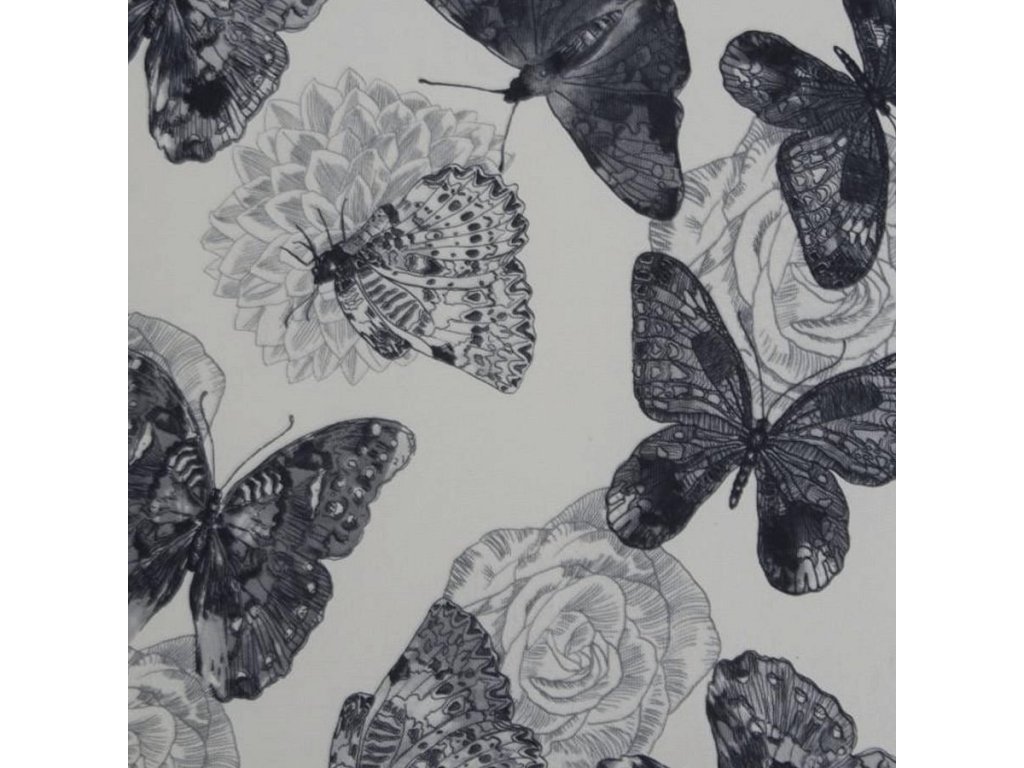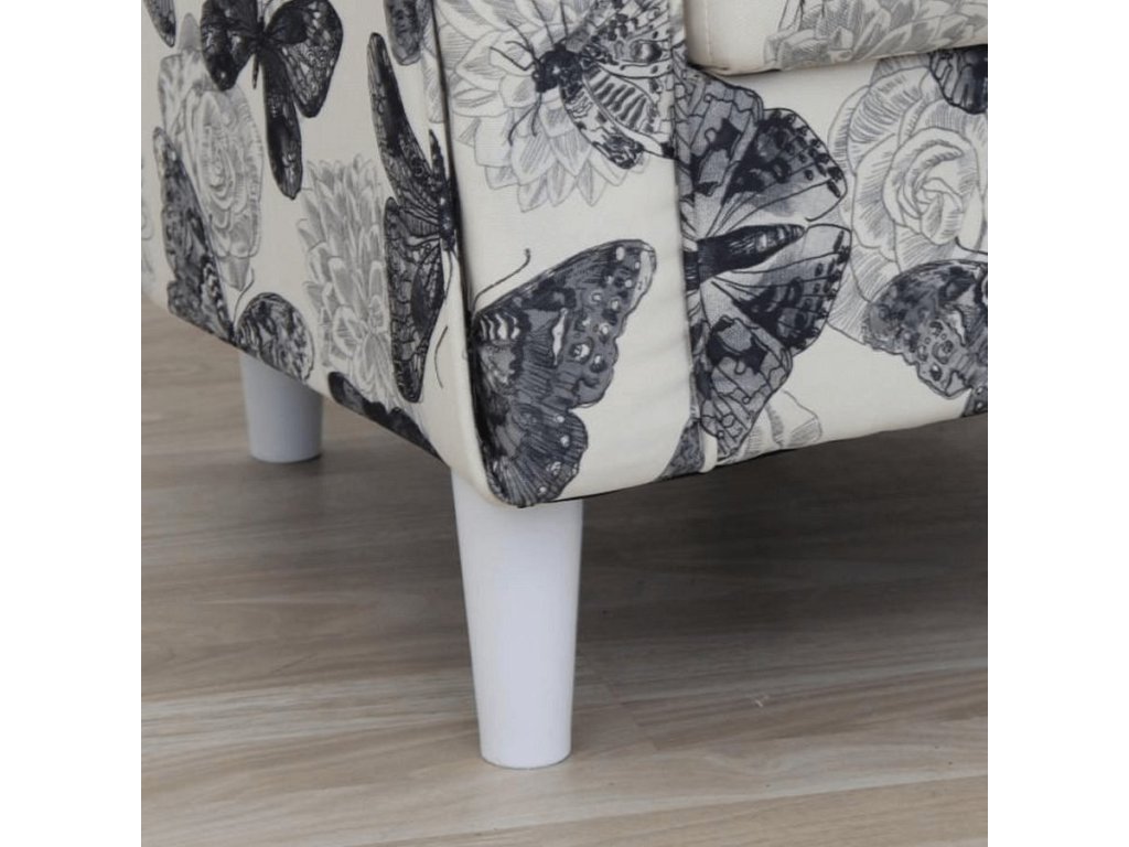 Křeslo ušák s taburetem, látka butterfly 1 šedá s bílou/bílá, ASTRID