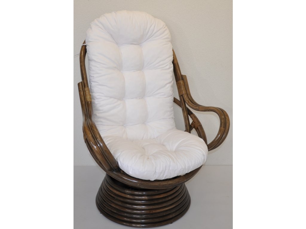 Ratanové houpací křeslo Swivel hnědé polstr bílý