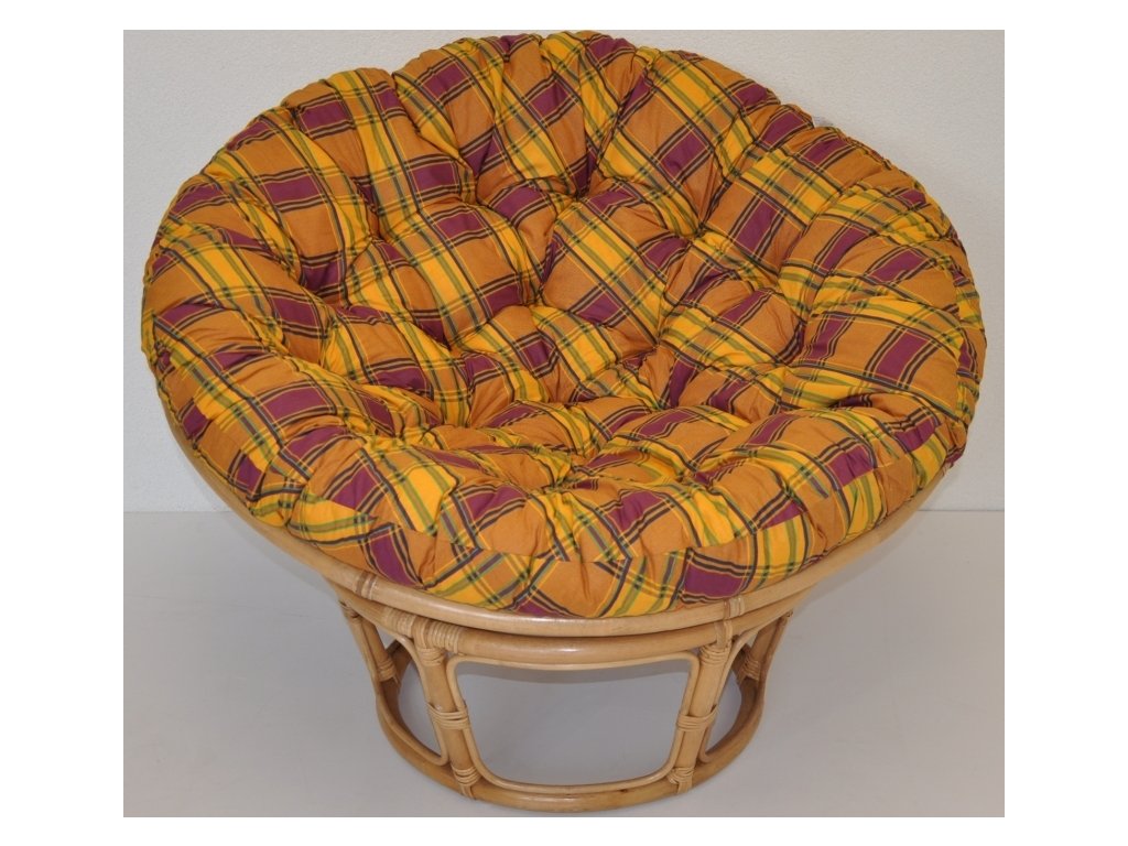 Ratanový nábytek - ratanové křeslo papasan je vyrobeno z přírodního ratanu s barvou ratanové konstrukce odpovídající fotografii výrobku, cena včetně polštáře s barevným motivem dle obrázku.