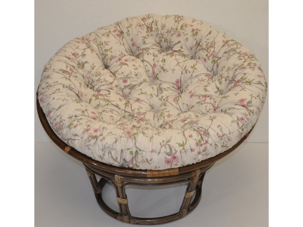 Ratanový papasan 110 cm hnědý polstr motiv ptáci