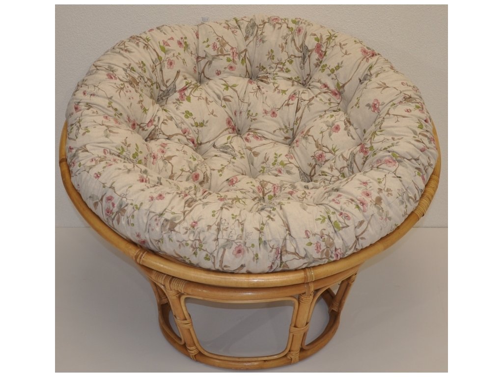 Ratanový papasan 110 cm medový polstr motiv ptáci