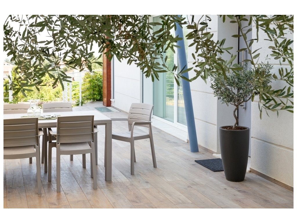 Grafitové provedení křesla RECANATI je univerzální a skvěle doplní mnohé stoly či sestavy v této barvě, což Vám umožní vytvořit elegantní a vkusné venkovní prostředí.