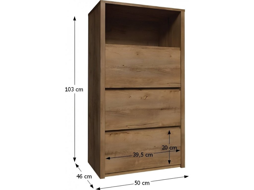 Komoda KS3, MONTANA Materiál: DTD laminovaná, ABS hrany Barevné provedení: dub lefkas tmavý Rozměry (ŠxHxV): 50x46x103 cm. Tloušťka materiálu: 15 mm Dodávané v demontu.