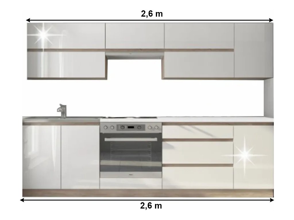 Kuchyňská sestava LINE Materiál: DTD laminovaná Provedení: dub sonoma/bílý lesk Rozměry (Š): 2,6 m Tloušťka pracovní desky: 38 mm Tloušťka materiálu: 16 mm.Tloušťka materiálu dvířka: 18 mm. S pracovní deskou (kromě dřezové desky) Systém tichého dorazu zásuvek Systém tichého zavírání dvířek Tloušťka pracovní desky je až 38 mm. Dodávána s pracovní deskou a dolní lištou. Dodáváno v demontu. Spodní skříňky jsou dodávány s pracovní deskou (kromě skříňky D80ZL) a dolní lištou. Možnost dokoupit dřez v ceně 2.190 Kč. Možnost dokoupit pracovní desku 38 mm v ceně 1.440 Kč / bm.