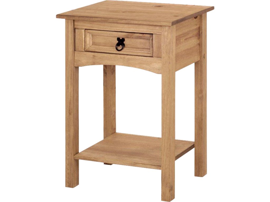 materiál masiv borovice voskovaná v medovém odstínu 1 zásuvka, 1 police, kovová ozdobná úchytka součást sestavy Corona 3