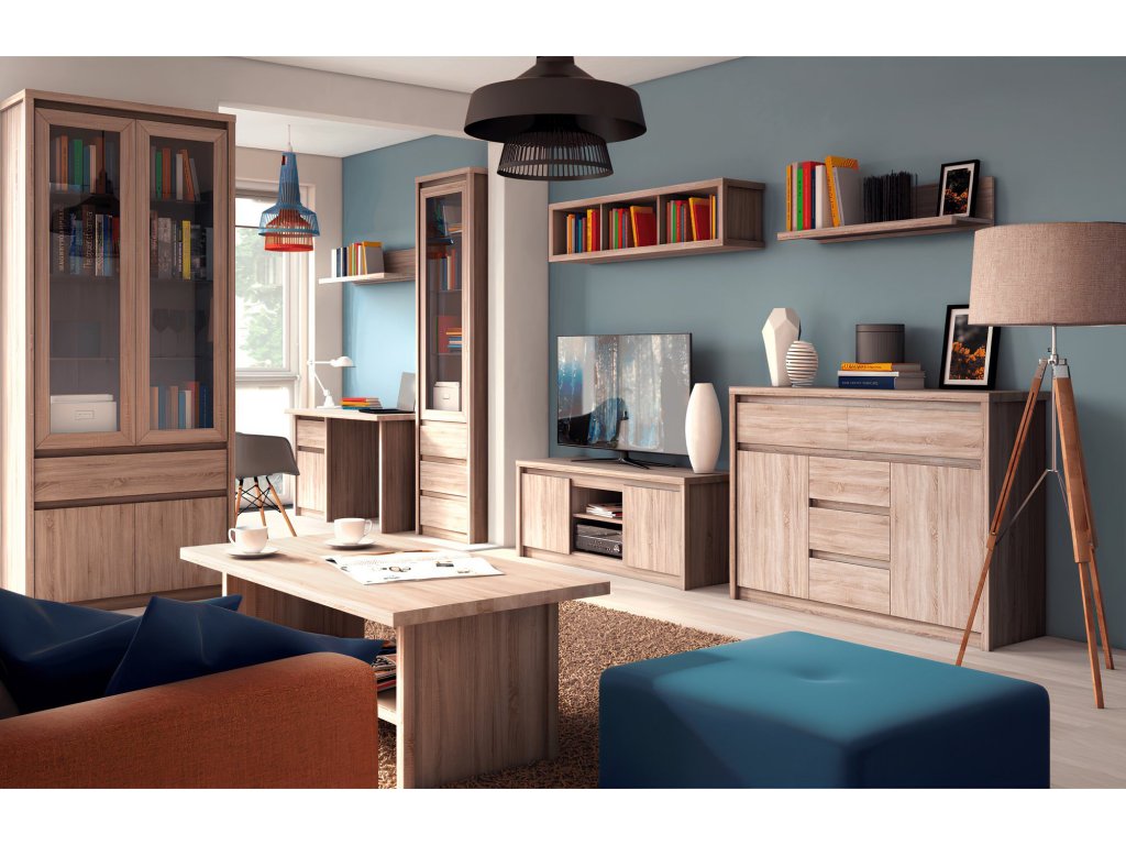 Vitrína se šuplíkem 2D2W1S, dub sonoma, NORTY TYP 3
