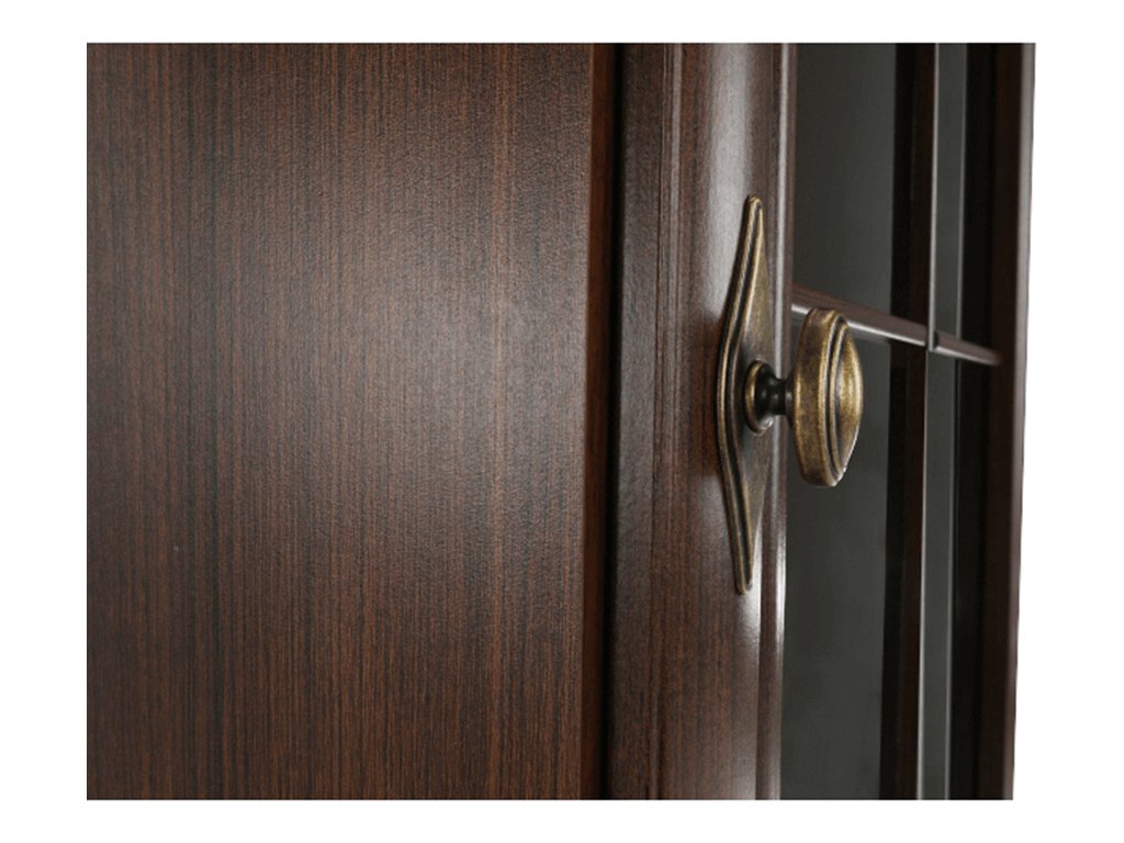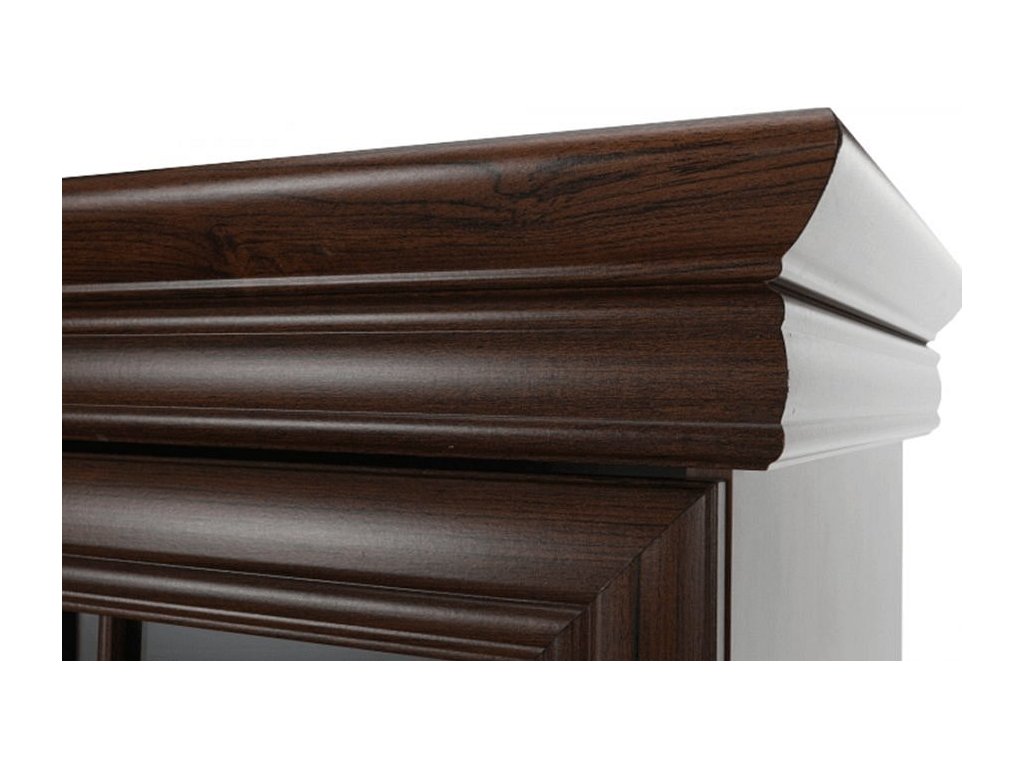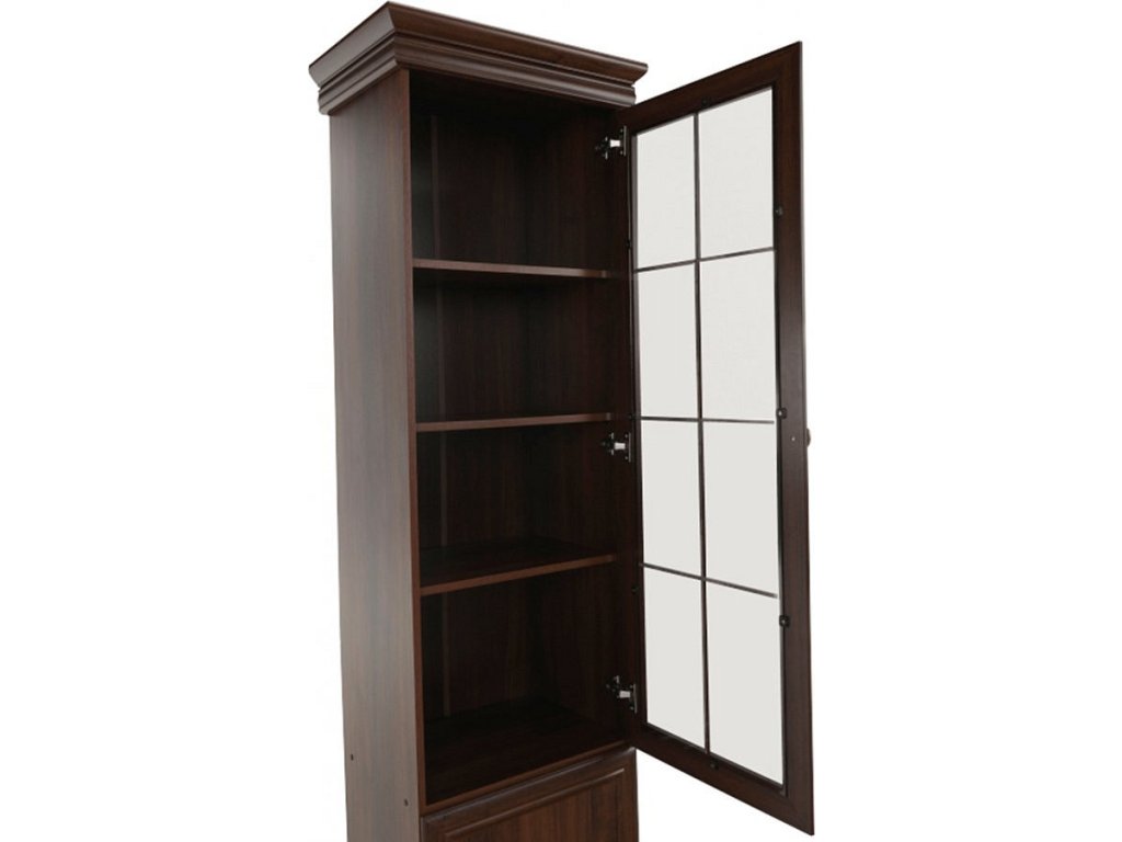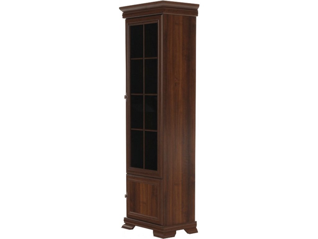 Vitrína KRW1 KORA. Barevné provedení samoa king. Materiál laminovaná DTD, MDF, sklo, kov. Rozměry (ŠxHxV): 58x40x193 cm Tloušťka materiálu korpus: 15 mm Tloušťka materiálu vrchní desky: 22 mm Tloušťka materiálu dolní desky: 22 mm Výška spodního prostoru od podlahy: 10,5 cm