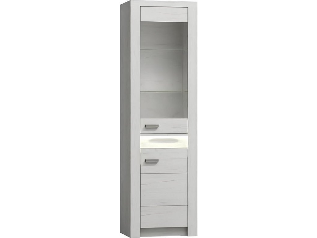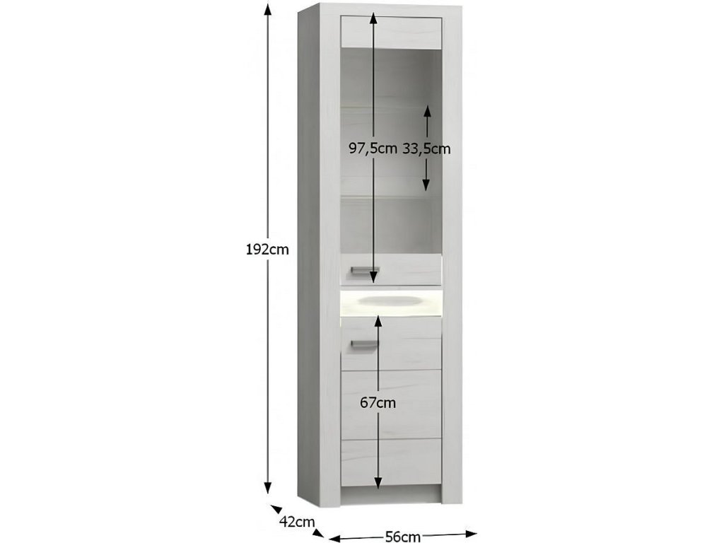 Vitrína 04 z luxusního sektorového nábytku Vhodná na zařízení obývacích pokojů a jídelně, Korpus hrubý až 48 mm, Tloušťka materiálu zbývající části: 16 mm, úchytky kovové Materiál DTD laminovaná, ABS hrany, barevné provedení: jasan bílý. Rozměry ŠxHxV: 56x42x192 cm. Možnost dokoupení LED osvětlení v ceně 770 Kč. Dodávané v demontu.