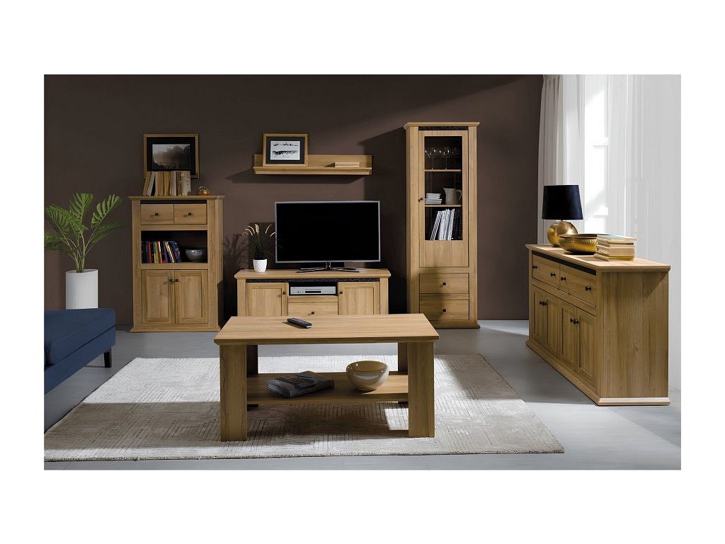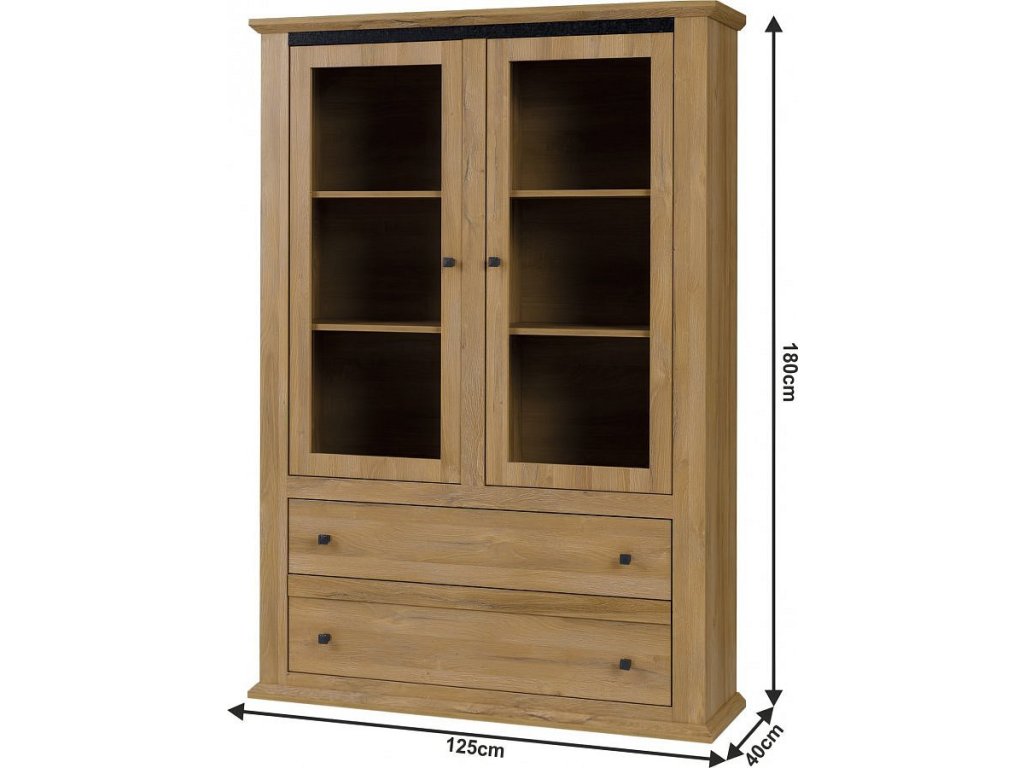 Materiál: DTD laminovaná / ABS hrany Barva: dub grand Rozměry (ŠxHxV): 125x40x180 cm Tloušťka materiálu: 40 mm dvoudveřová Dveskrinky prosklená S policemi dva šuplíky S úchytkami S 3D efektem elegantní V provensálském stylu kovové úchytky Dodávané v demontu