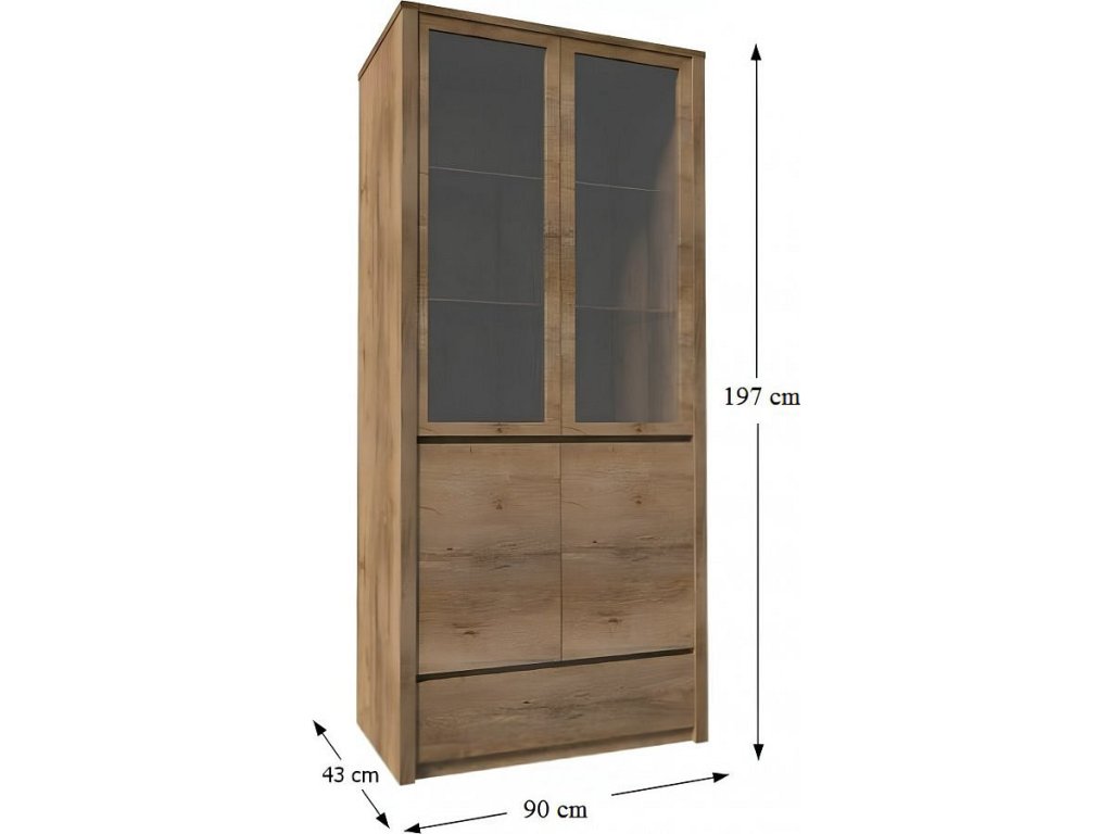Vitrína, dub lefkas tmavý, MONTANA W2D