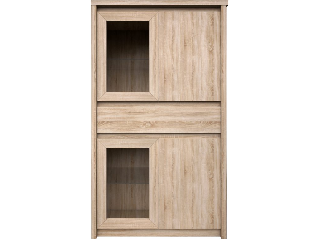 Vitrína s šuplíkem 2W2D1S, dub sonoma, NORTY TYP 7
