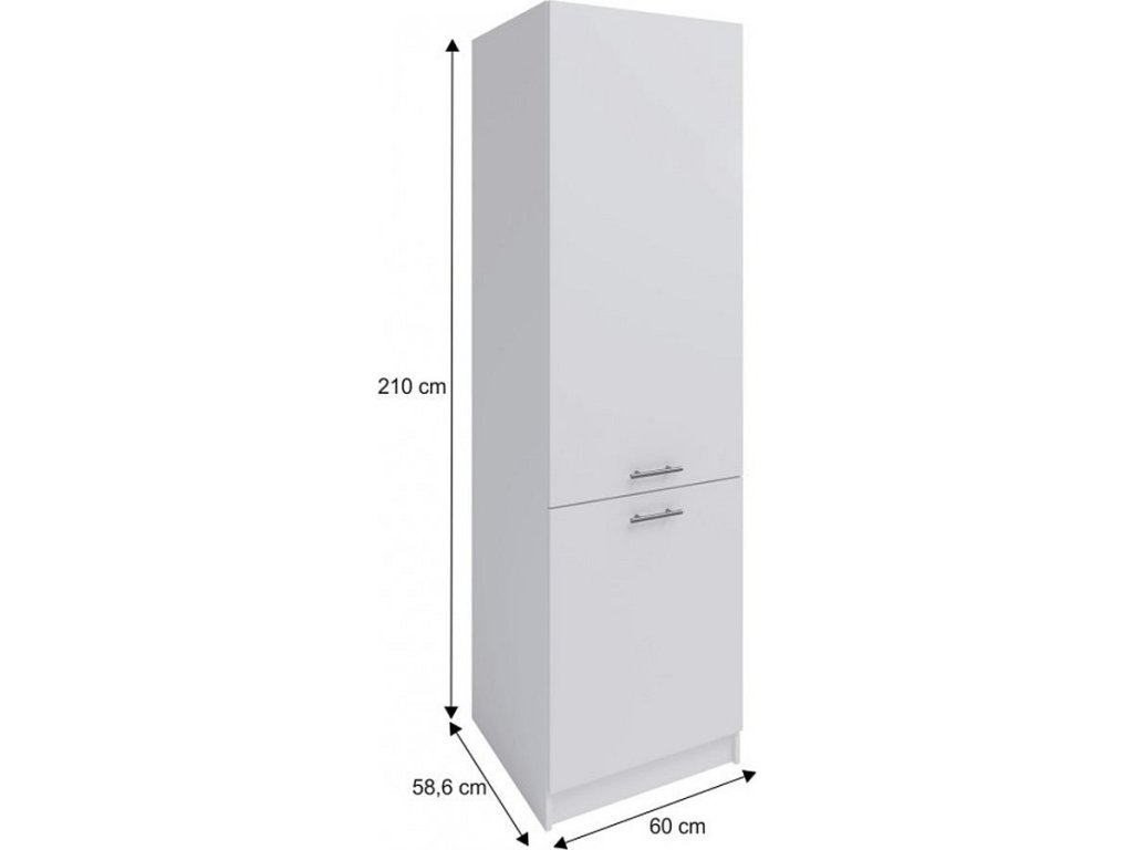 potravinová skříňka FABIANA Materiálové provedení: DTD laminovaná dřevotříska Barevné provedení: bílá Rozměry (ŠxHxV): 60x58,6x210 cm Dodávané v demontu. Možnost zakoupení pracovní desky Fabiana Metalic brown šedá s tloušťkou 2,8 cm, šířkou 60 cm a cenou za bm 1.190 Kč. Možnost dokoupení univerzálního L / P dřezu LAY ON.