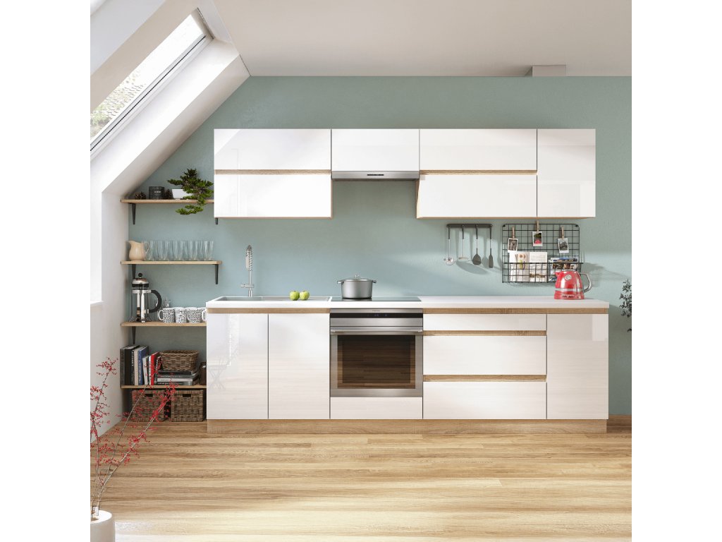 Dolní skříňka D 80 ZL, vysoký bílý lesk/dub sonoma, LINE