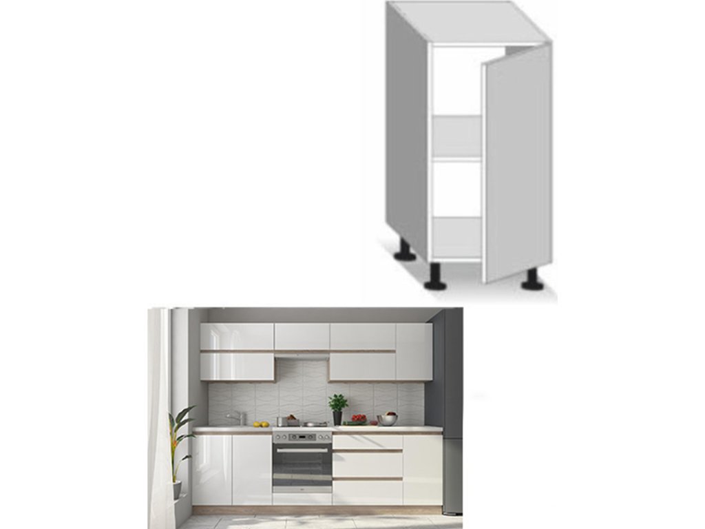 Dolní skříňka D 40 LINE Materiál: DTD laminovaná Provedení: vysoký bílý lesk / dub sonoma Rozměry (ŠxHxV): 40x54,5x82 cm S dvířky Systém tichého zavírání dvířek úložný prostor Dodávaná s pracovní deskou a s dolní lištou moderní design Dodávané v demontu. Možnost dokoupit dřez v ceně 2.190 Kč. Možnost dokoupit pracovní desku 38 mm v ceně 1.440 Kč / bm.
