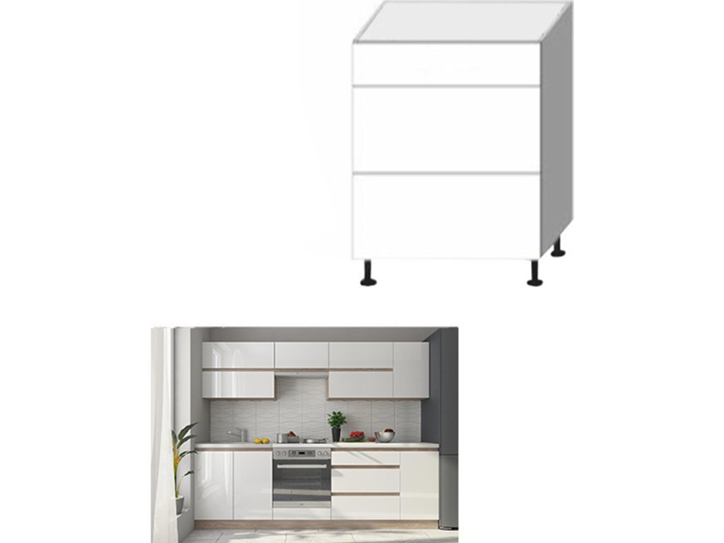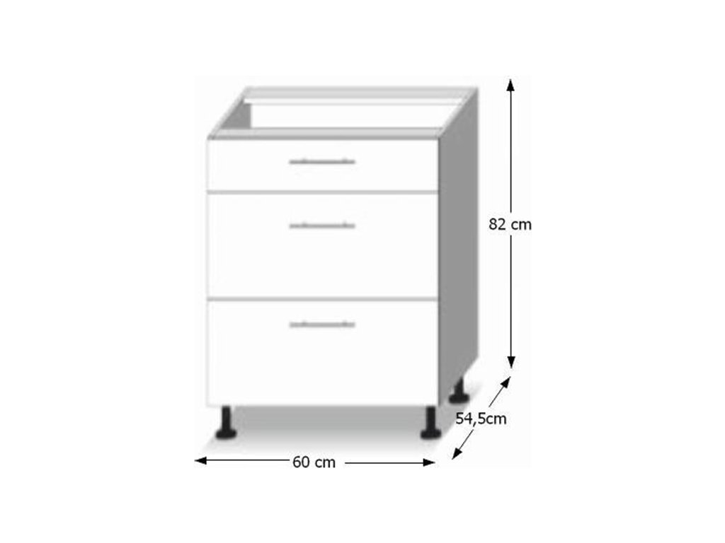 Dolní skříňka D 60 LINE Materiál: DTD laminovaná Provedení: vysoký bílý lesk / dub sonoma Rozměry (ŠxHxV): 60x54,5x82 cm 3 šuplíky Systém tichého dorazu šuplíků Dodávaná s pracovní deskou a dolní lištou úložný prostor moderní design Dodávané v demontu. Možnost dokoupit dřez v ceně 2.190 Kč. Možnost dokoupit pracovní desku 38 mm v ceně 1.440 Kč / bm.