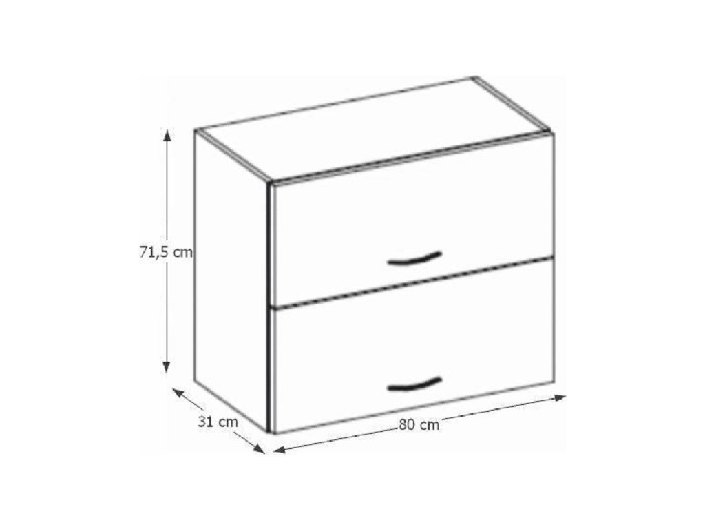 Horní dvoudveřová skříňka, Materiál: DTD laminovaná / MDF / kov Provedení: krém vysoký lesk, Rozměry ŠxHxV: 80x31x71,5 cm. Dodávané v demontu. tloušťka pracovní desky 28 mm, horní i dolní rozměr 2,6 m, dolní skříňky ZZ jsou dodávány včetně pracovní desky a dolní lišty, dřezová skříňka bez pracovní desky. Sektorové skrinky sú dodávané bez pracovnej dosky vrátane spodnej lišty.Možnosť dokúpiť PD travertyn v cene 1.490 Kč/1m. Možnosť dokúpiť univerzálny Ľ/P drez LAY ON.