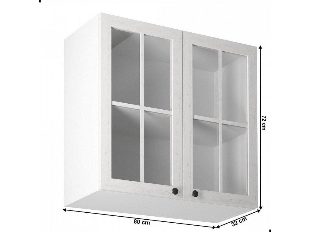 Horní dvoudveřová skříňka se sklem G80, bílá / sosna andersen, PROVANCE