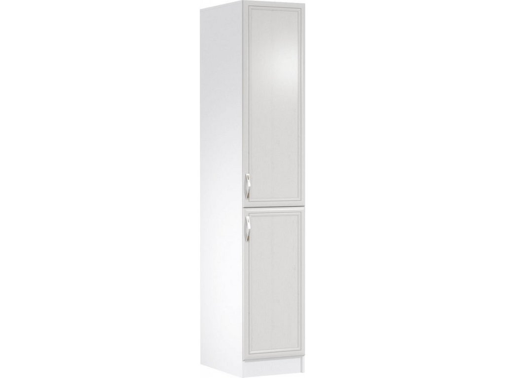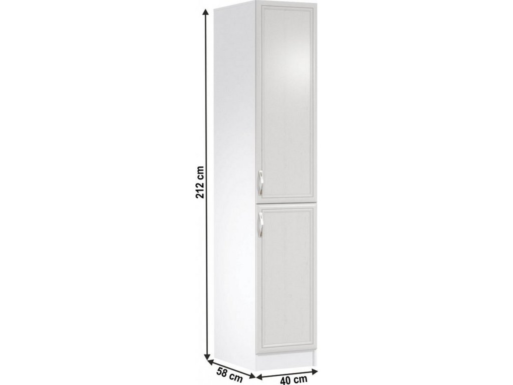 Potravinová skříňka D40SP ke kuchyni SICILIA Provedení: DTD laminovaná/MDF lišty Barva: bíla/sosna Andersen Rozměry (ŠxHxV): 40x58x212 cm Tloušťka materiálu: 15 mm Pravé prevedenie Spodní skříňky jsou dodávány bez pracovní desky.Můžete si objednat pracovní desku pískovec k provedení ořech Milano - tloušťka 28mm nebo pracovní desku dub Lancelot k provedení sosna andersen - tloušťka 38 mm.