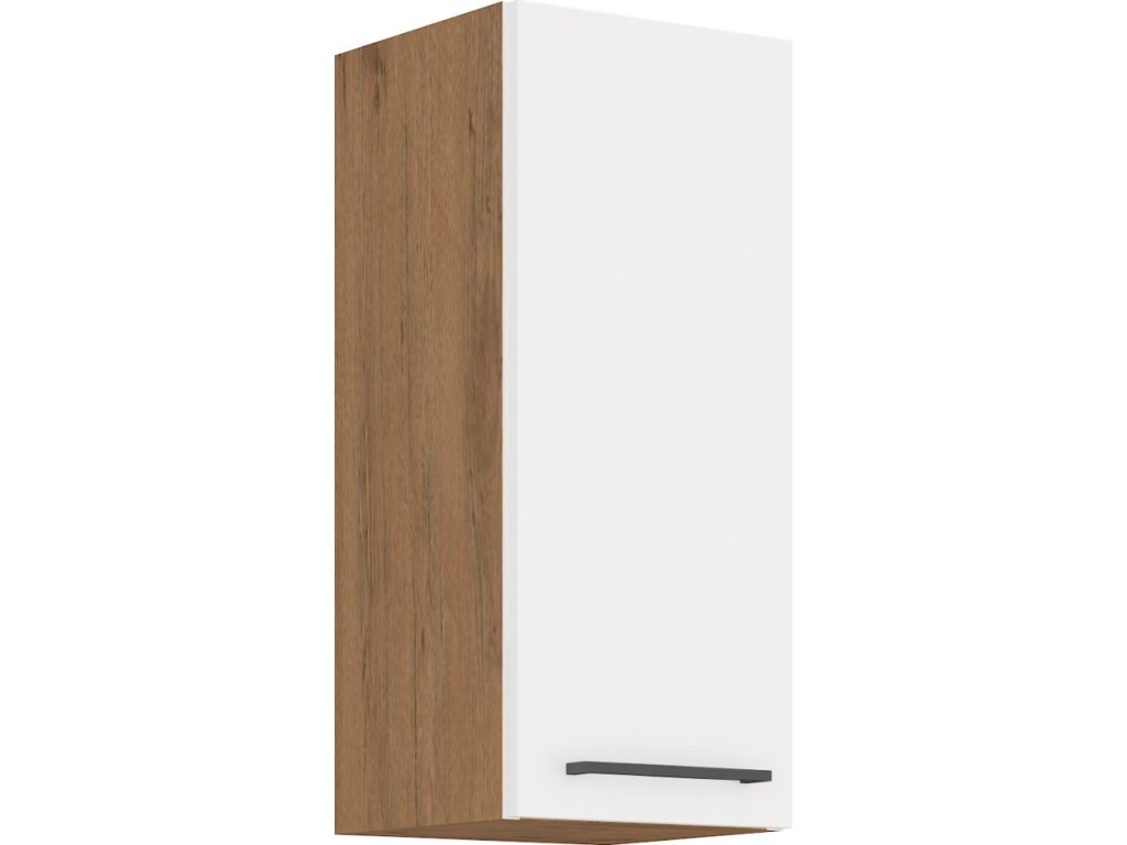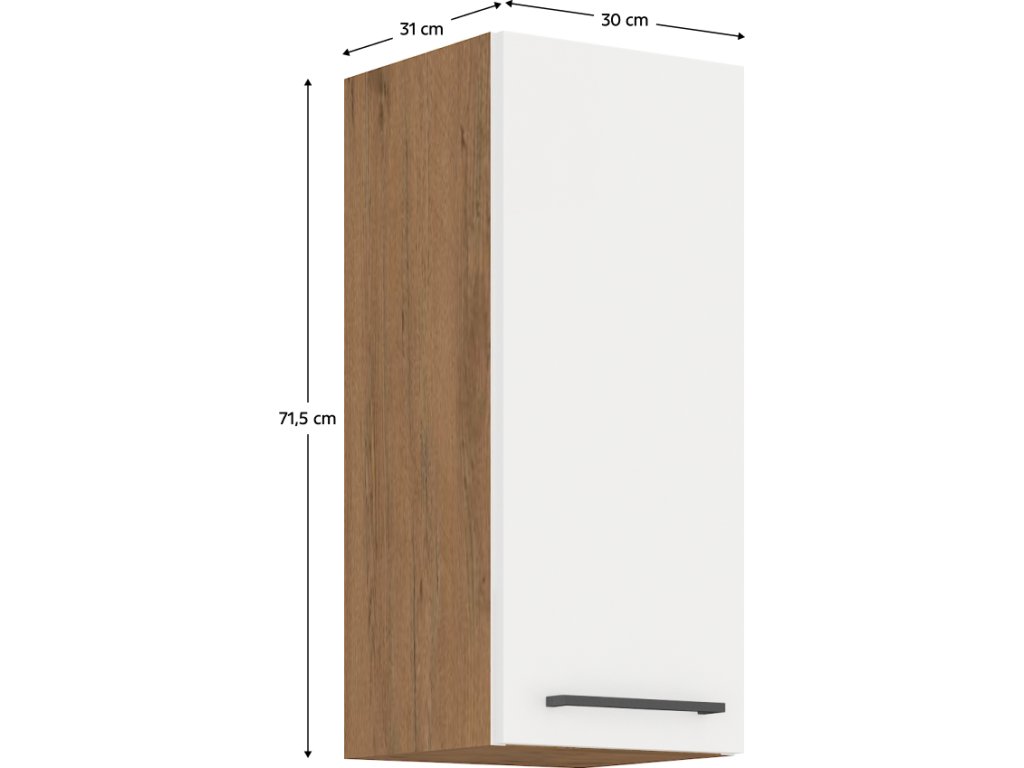 Horní skříňka VEGA 30 G-72 1F Materiál: DTD laminovaná / MDF Barva: dub lancelot / bílá extra vysoký lesk HG Rozměry (ŠxHxV): 30x31x71,5 cm Dodávané v demontu Spodní skříňky jsou dodávány včetně dolní lišty, bez pracovní desky. Možnost dokoupit pracovní desku dub lancelot v ceně: 1.290, - Kč / m. Možnost dokoupit univerzální L / P dřez v ceně 2.190, - Kč.