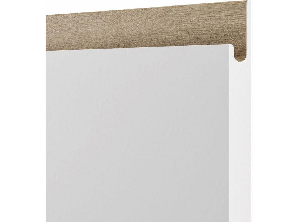Stylová kuchyňská linka v nadčasovém barevném provedení rozzáří Vaši kuchyni. je moderní bílá kuchyňská linka, která je kombinována s dřevěným dekorem v odstínu dub Sonoma. Trendový design a nadčasová barevná kombinace zaručí, že tato kuchyňská linka bude moderní io několik let.