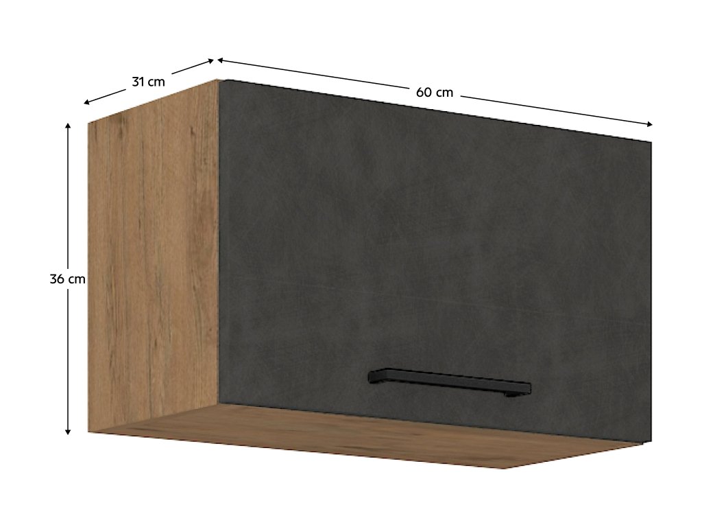 Horní skříňka Vega 60 GU-36 1F Materiál: DTD laminovaná Barva: dub lancelot / šedá matná Rozměry (ŠxHxV): 60x31x36 cm Systém tichého zavírání dvířek Dodávané v demontu Spodní skříňky jsou dodávány včetně dolní lišty, bez pracovní desky. Možnost dokoupit pracovní desku dub lancelot v ceně: 1.290, - Kč / m. Možnost dokoupit univerzální L / P dřez v ceně 2.190, - Kč.