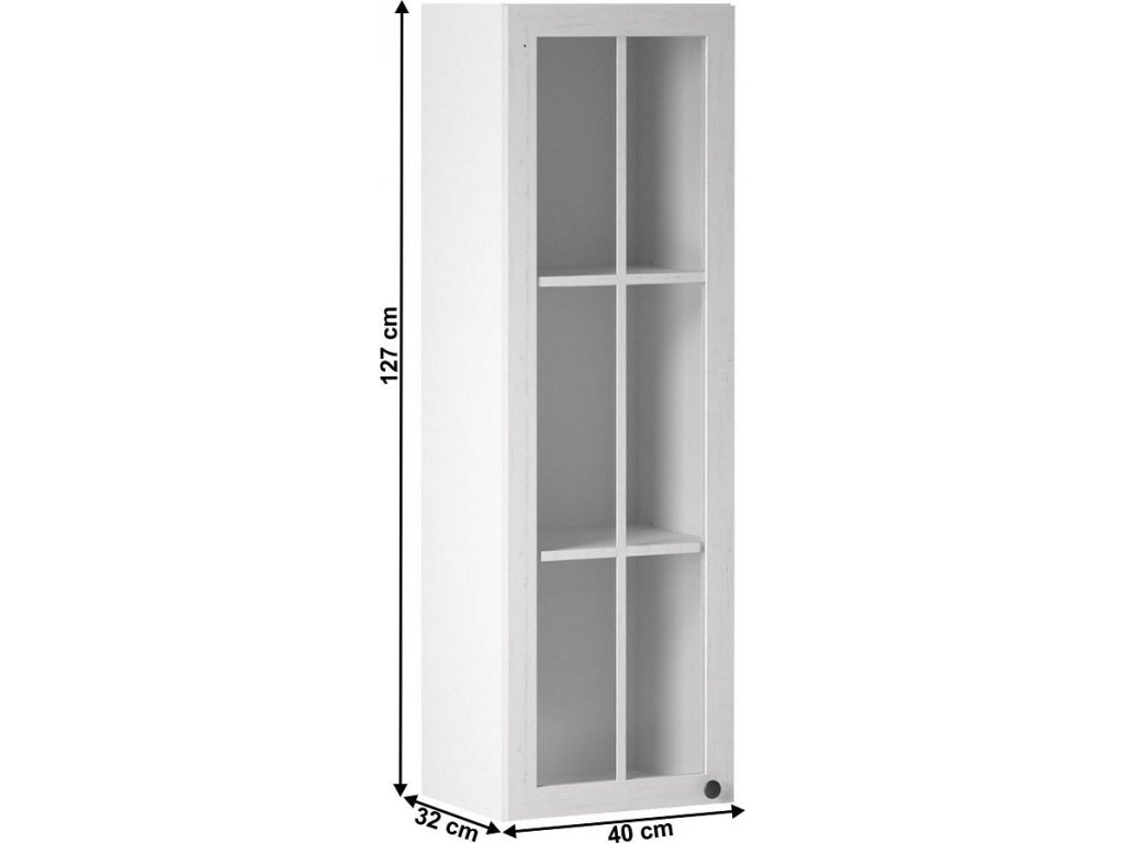 Horní skříňka se sklem W40S, bílá / sosna andersen, levá, PROVANCE