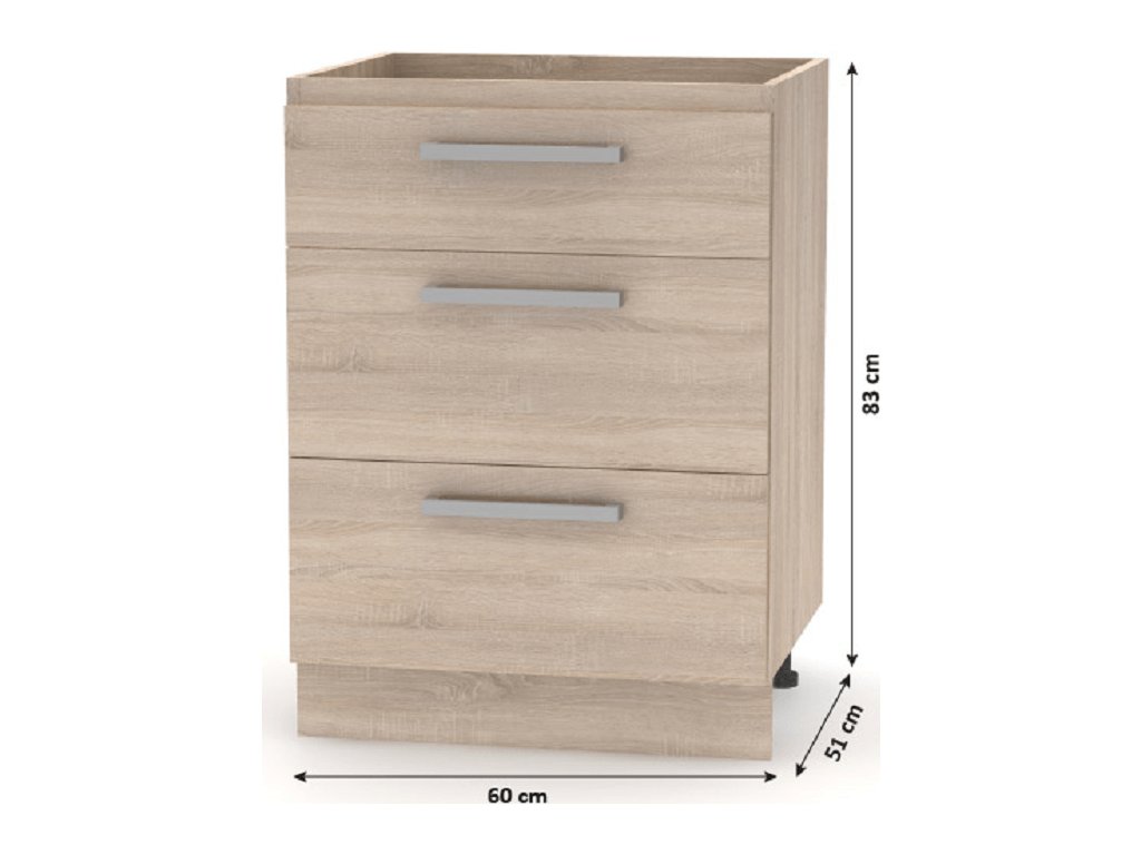 Spodní šuplíková skříňka 60 NOPL-058-0S Materiál: DTD laminovaná Barva: dub sonoma Rozměry (ŠxHxV): 60x51x83 cm Tloušťka materiálu: 16 mm Kvalitní slovenský výrobek. Dodávané v demontu. Skříňky ke kuchyni NOVA PLUS jsou dodávány bez pracovní desky. Pracovní desku v provedení granit antracit v tloušťce 38 mm lze doobjednat. Možnost dokoupení univerzálního L/P dřezu LAY ON.