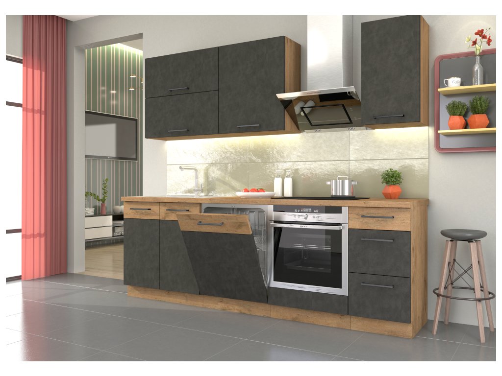 Vysoká skříňka VEGA 60 DP-210 2F Materiál: DTD laminovaná Barva: dub lancelot / šedá matná Rozměry (ŠxHxV): 60x57x210 cm Systém tichého zavírání dvířek Se spodní lištou Dodávané v demontu Spodní skříňky jsou dodávány včetně dolní lišty, bez pracovní desky. Možnost dokoupit pracovní desku dub lancelot v ceně: 1.290, - Kč / m. Možnost dokoupit univerzální L / P dřez v ceně 2.190, - Kč.o