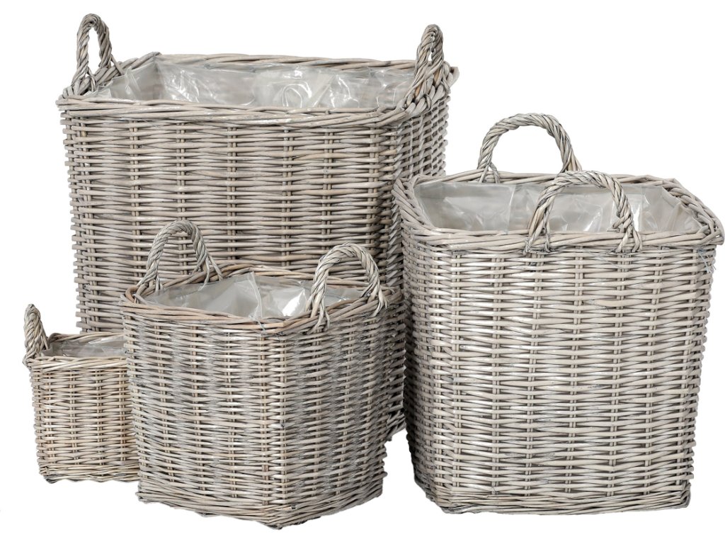 Proutěný koš se čtvercovým půdorysem v přírodní našedivělé barvě představuje skvělou variantu obalu pro vaše květiny. Nabízíme vám je v sadě čtyř různých velikostí, tak abyste mohli vybrat tu správnou míru pro vaší vybranou rostlinu. Materiál z proutí dodává do interiéru příjemný a rustikální vzhled, který navodí útulnější a atmosféru. Tento koš je především estetickým doplňkem, protože je celý pouze a jen z proutí. Proto je důležité, aby květiny v koši byly umístěny již ve svém obalu a nehrozilo prosakování vody.Doplňkové parametry
