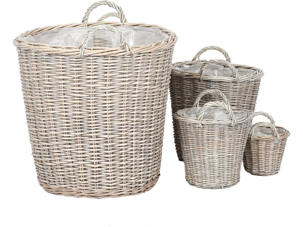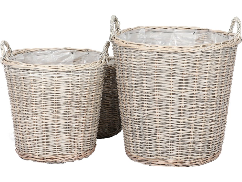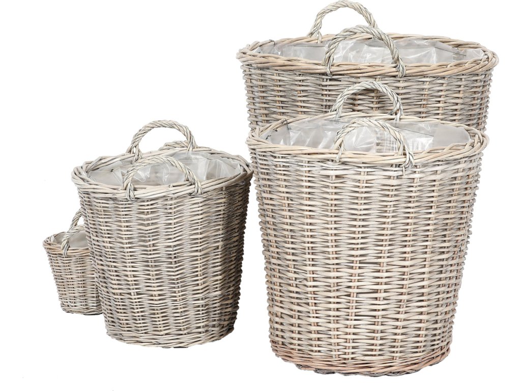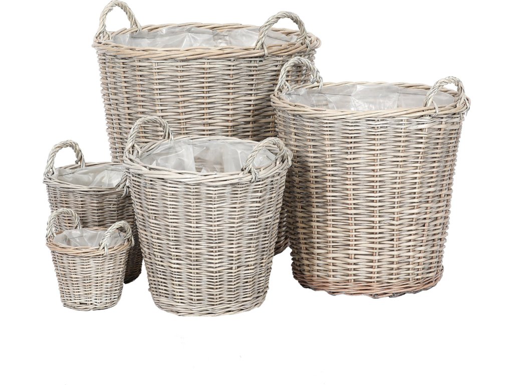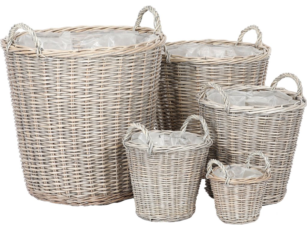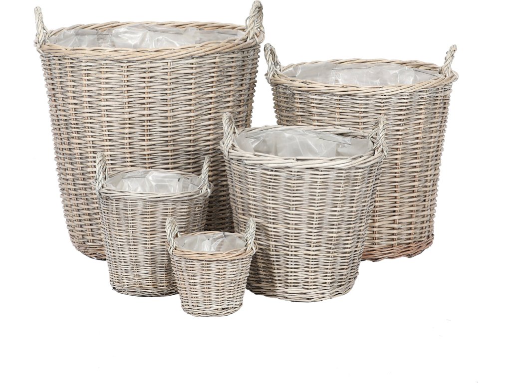 Proutěný koš s kruhovým půdorysem v přírodní našedivělé barvě představuje skvělou variantu obalu pro vaše květiny. Nabízíme vám je v sadě pěti různých velikostí, tak abyste mohli vybrat tu správnou míru pro vaší vybranou rostlinu. Materiál z proutí dodává do interiéru příjemný a rustikální vzhled, který navodí útulnější a atmosféru. Tento koš se dvěma uchy po stranách pro snadnější přemisťování, je navíc vybaven igelitovou vložkou, která zabraňuje prosakování vody, a tím chrání obal samotný včetně jeho bezprostředního okolí.Doplňkové parametry